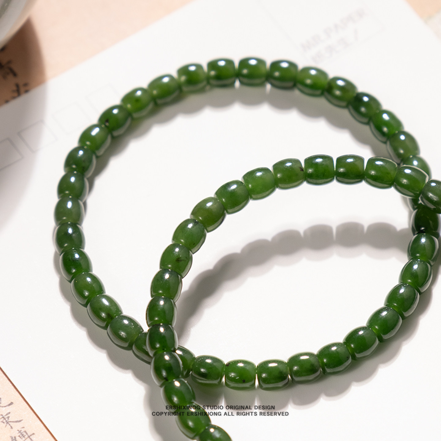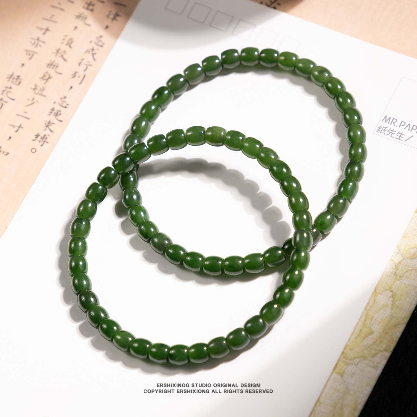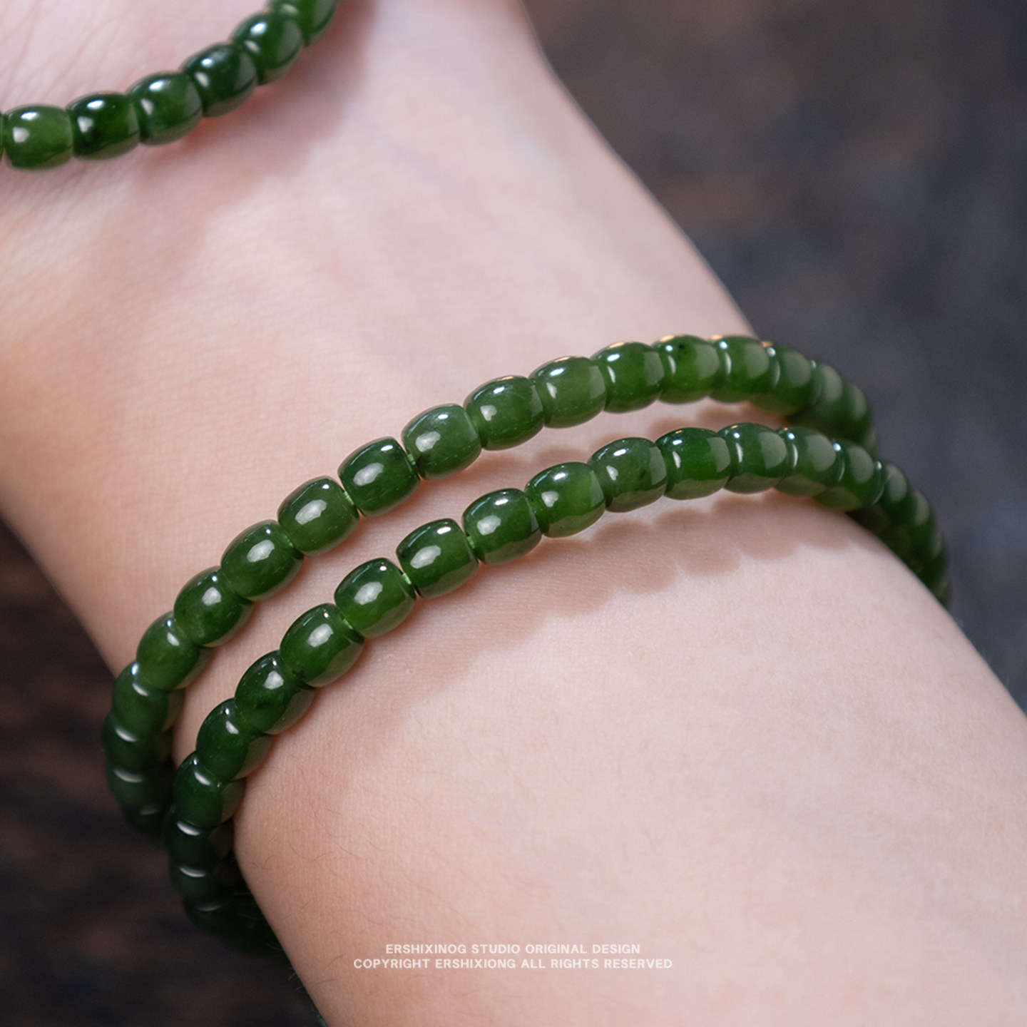收藏级天然无优化俄罗斯七号矿碧玉菠菜绿精工归圆直切手串