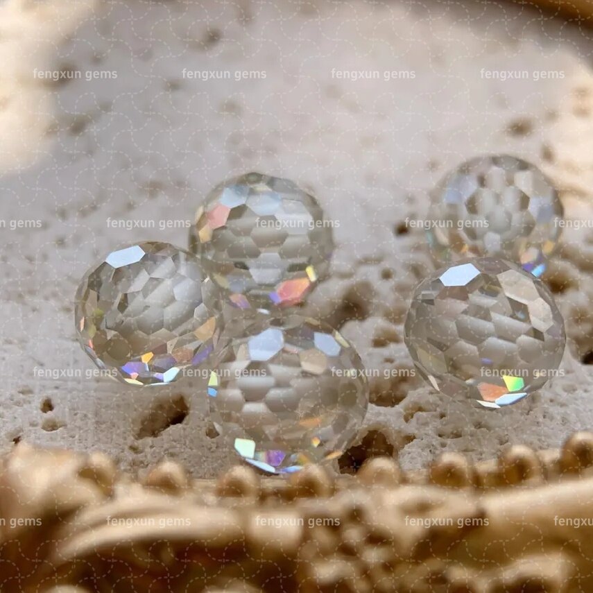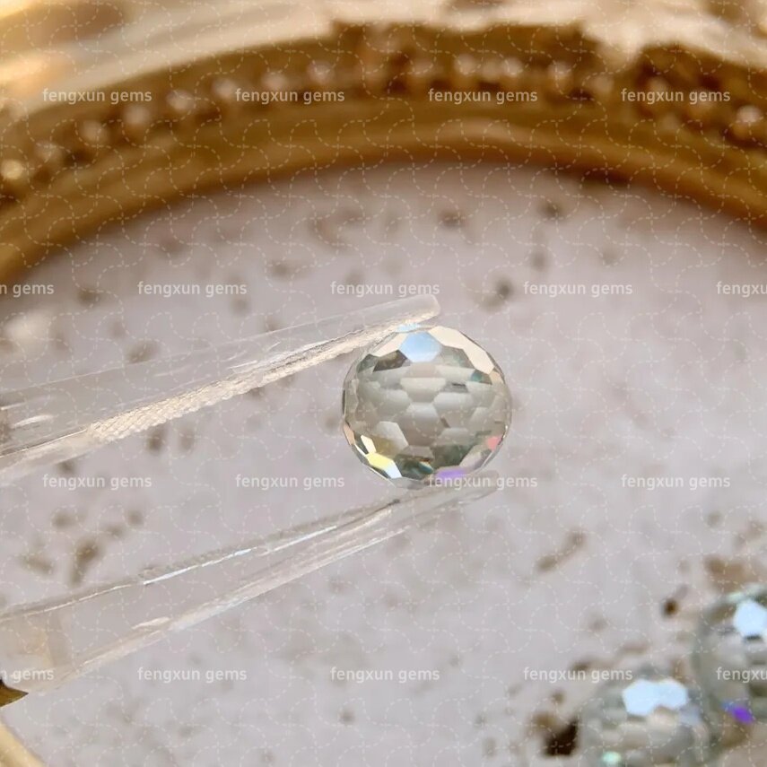 新品圆形足球刻面莫桑石珠子 带孔3-12mm白色色莫桑圆珠