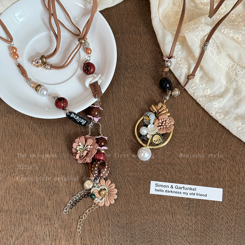 宵夜同款~长款花朵吊坠项链女2025新款甜酷辣妹风复古民族风配饰