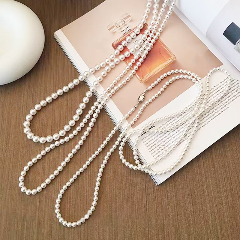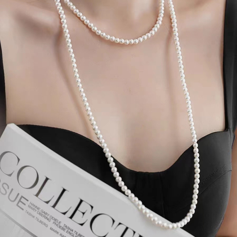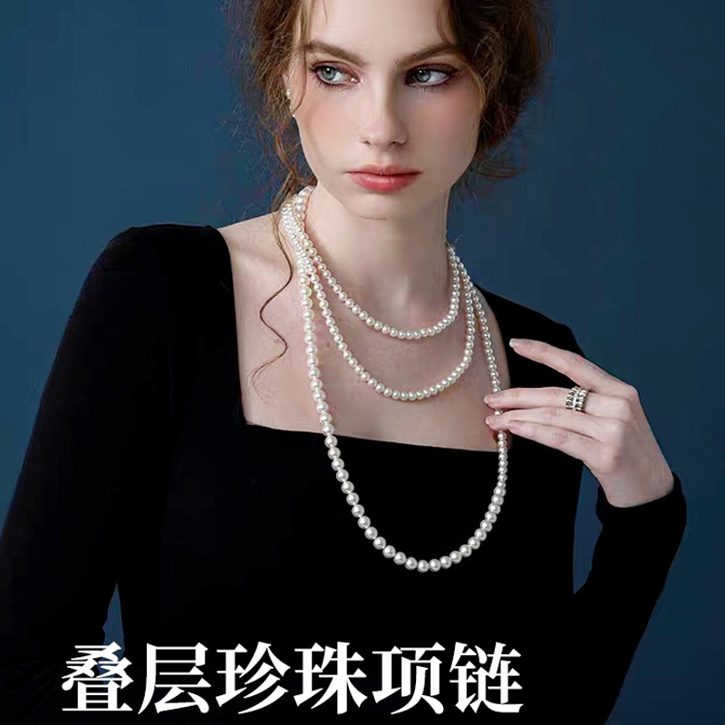 长款秋冬毛衣链女款人造珍珠项链多层叠戴女正圆强光颈链双层配饰