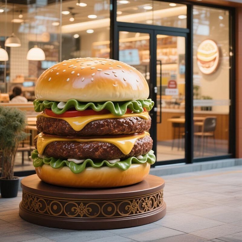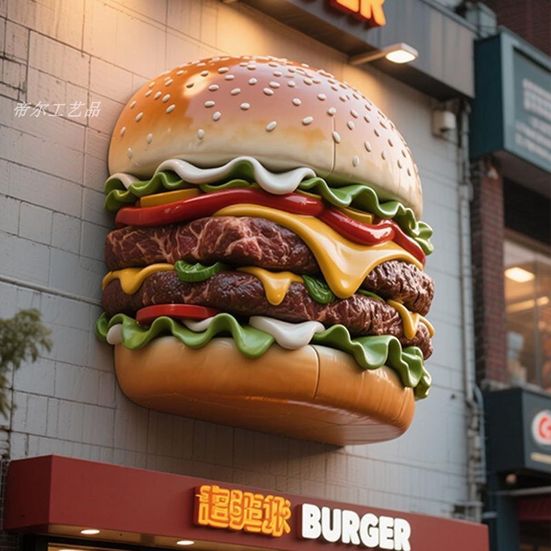 超大仿真汉堡雕塑发光模型店铺门头挂壁装饰创意招牌灯箱雕塑定制
