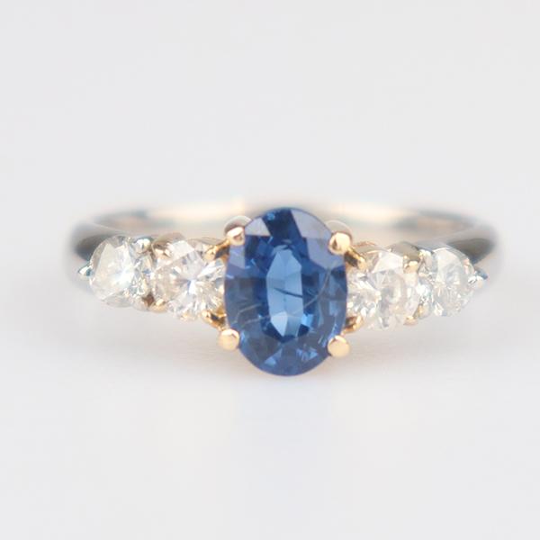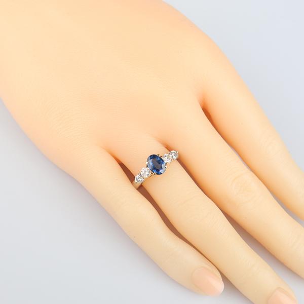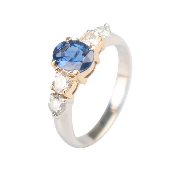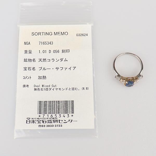 中古95新日本进口商品椭圆形切工蓝宝石钻石戒指PT900/K18YG53号