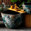 复古陶瓷仿古大缸浮世绘鱼缸落地摆件庭院园林粗陶手工流水水景盆