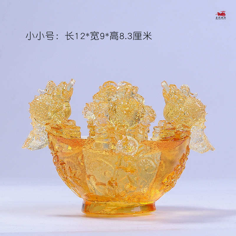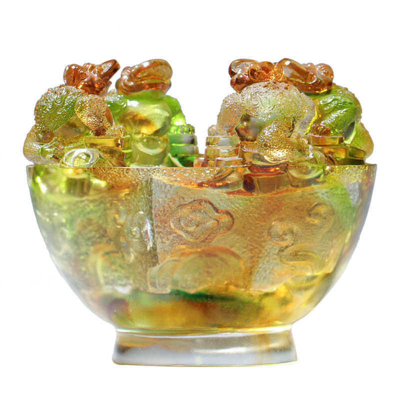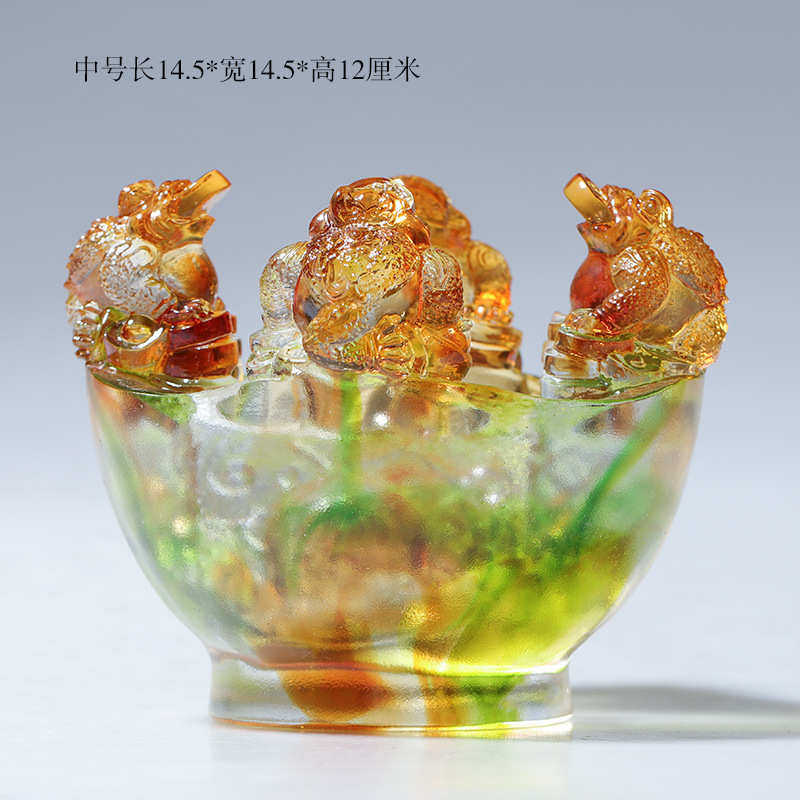 琉璃四方金蟾聚宝盆摆件家居客厅装饰新店开业前台礼品