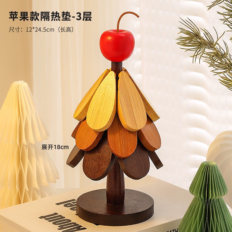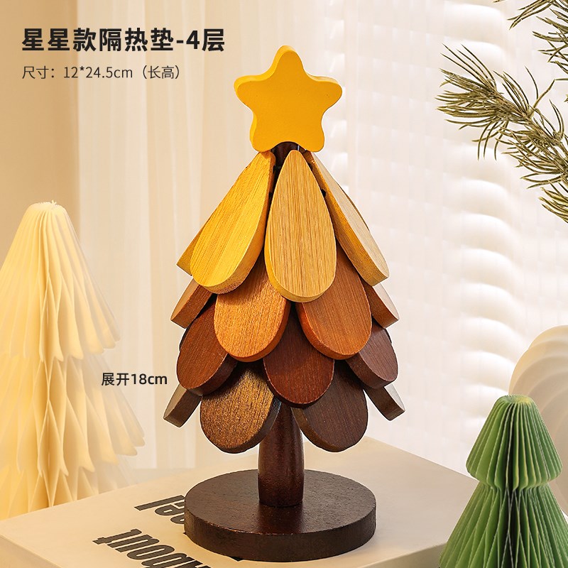 高级感圣诞树隔热垫餐桌摆件创意一棵F树实木防烫锅垫折叠杯垫碗