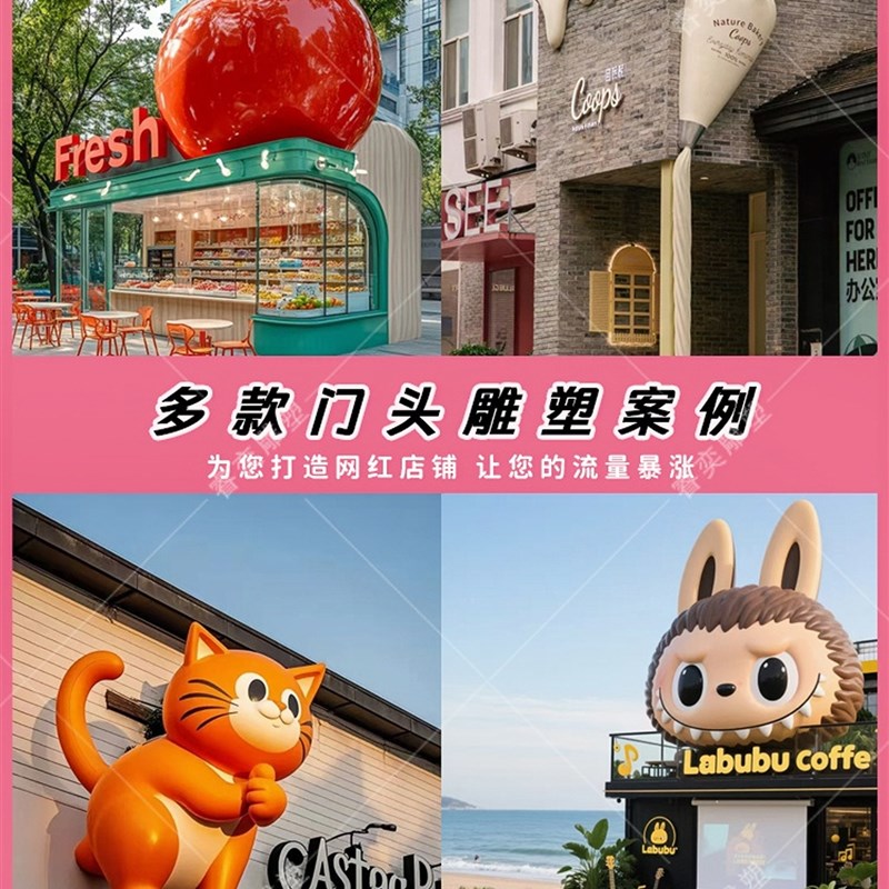 玻璃钢卡通雕塑定l制动物人物模型户外店铺门头招牌引流网红装饰