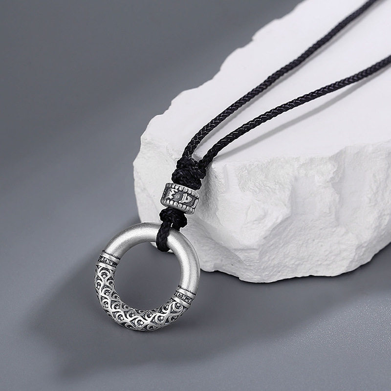 实心平安扣项链男款999纯银男生挂坠男士吊坠新年生日礼物送男友