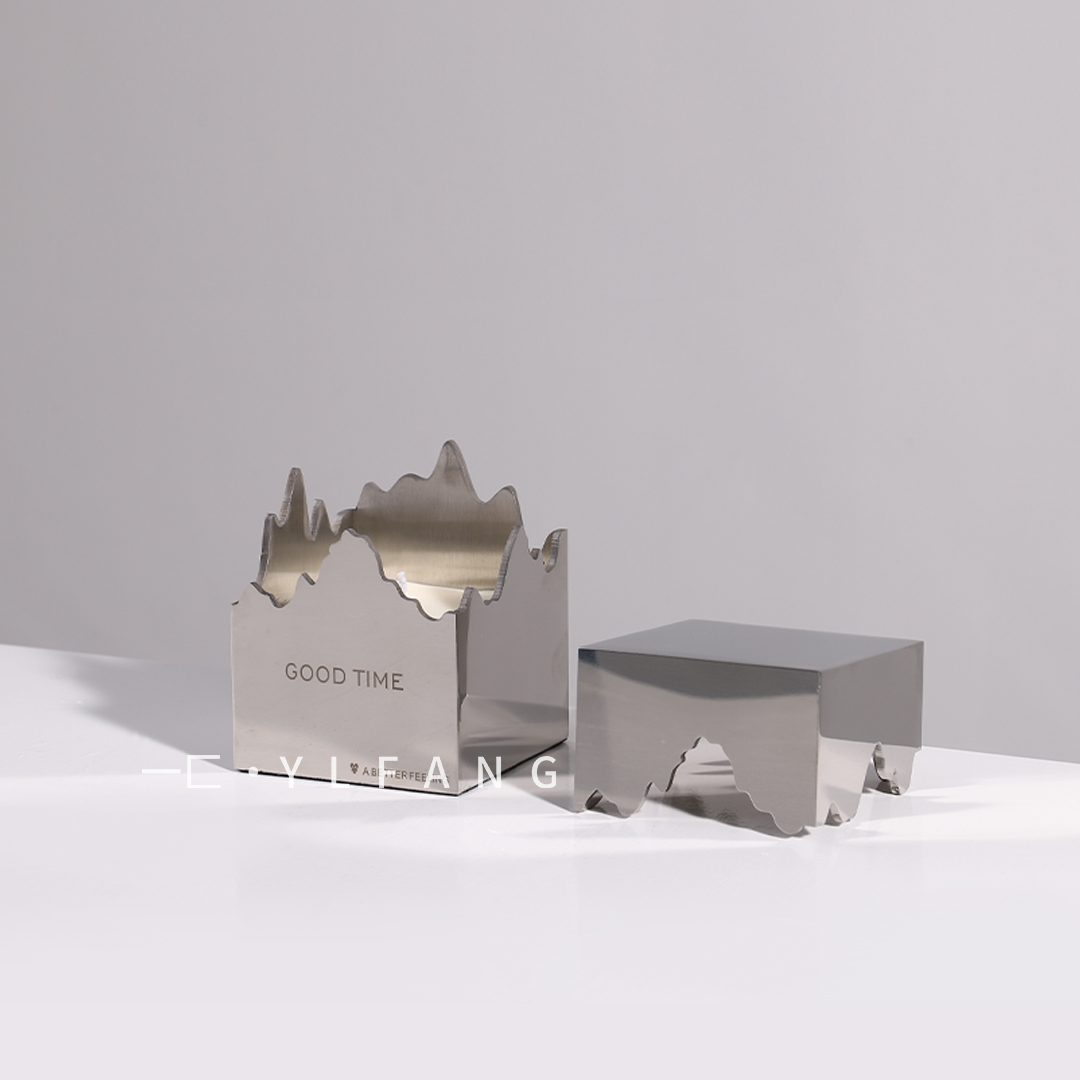 一匚现代简约几何体山峰不锈钢香薰 样板间售楼处会所卧室摆件