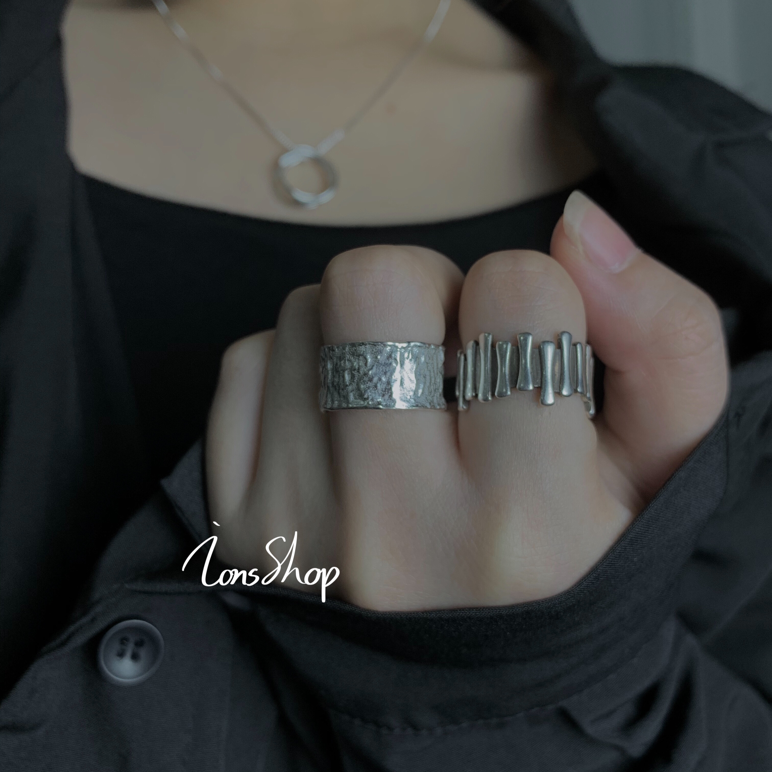 ions shop 复古不规则个性纯银s925戒指食指开口戒嘻哈冷淡风男女