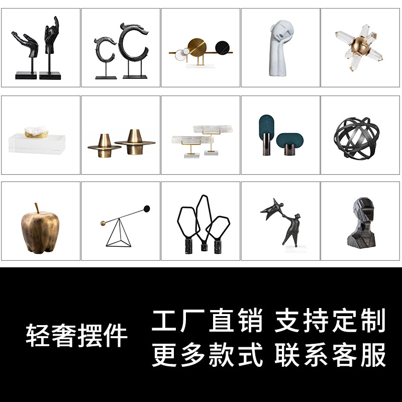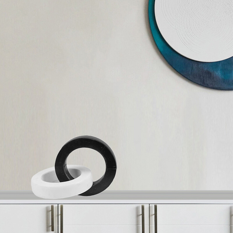 新中式黑白圆环摆件样板房售楼处软装饰品酒店前台展示架卧室客厅