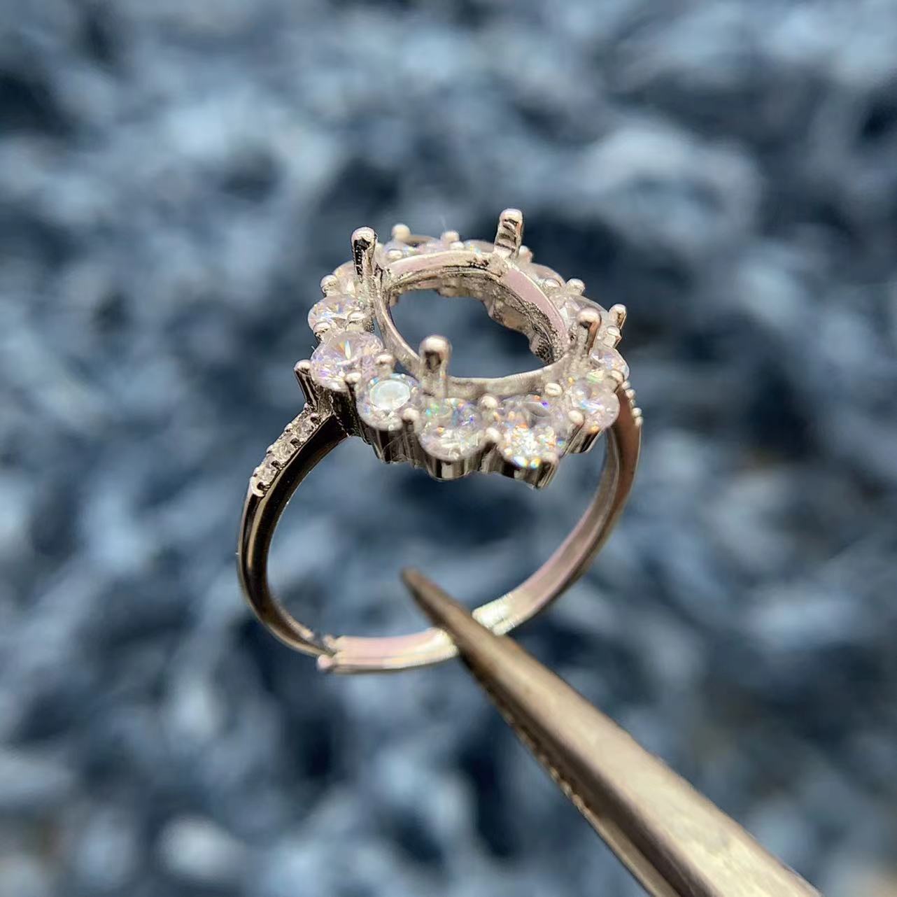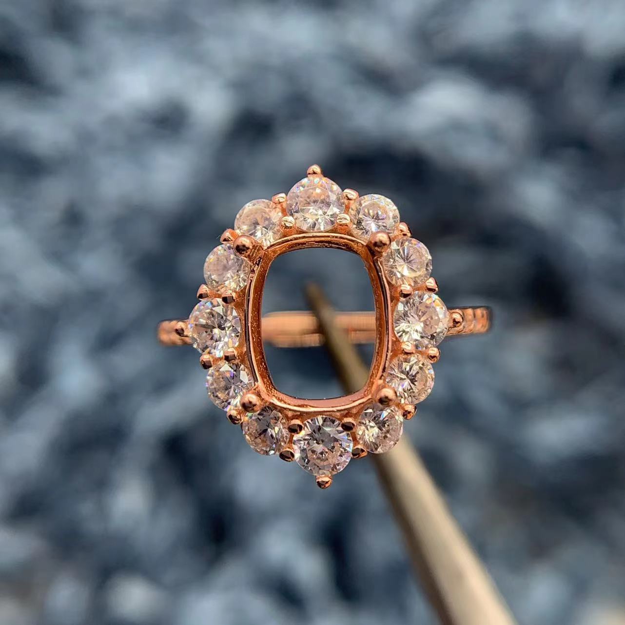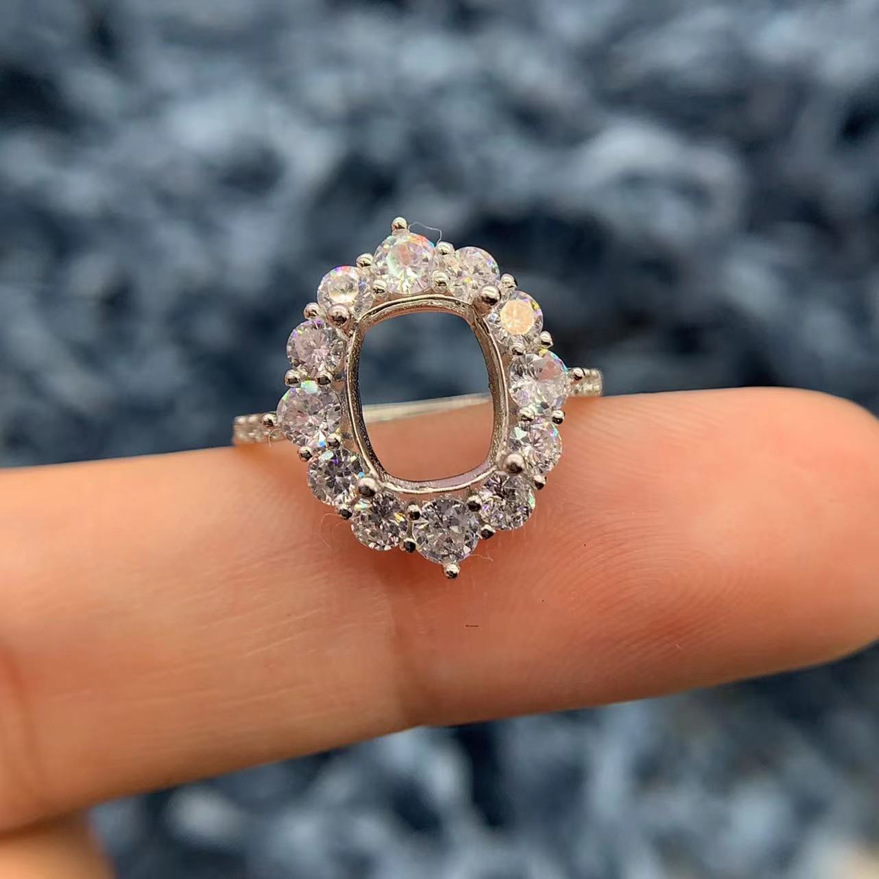 S925纯银戒指空托方形7*9mm枕形戒托托帕石水晶碧玺银托精致围钻