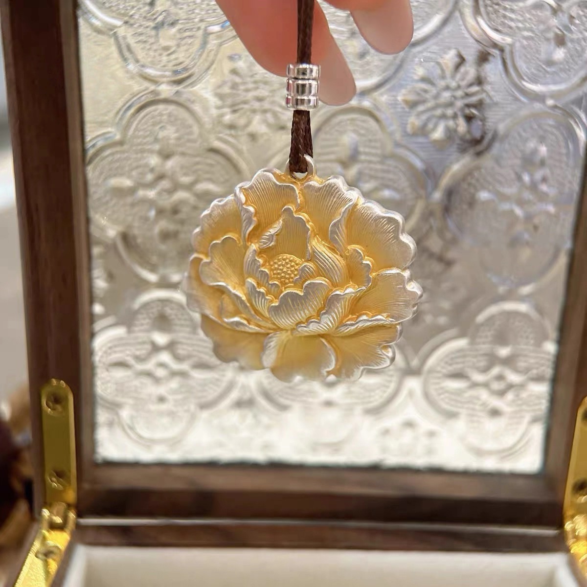 足银999描金牡丹花吊坠女款轻奢国风中式纯银项链送闺蜜女友礼物