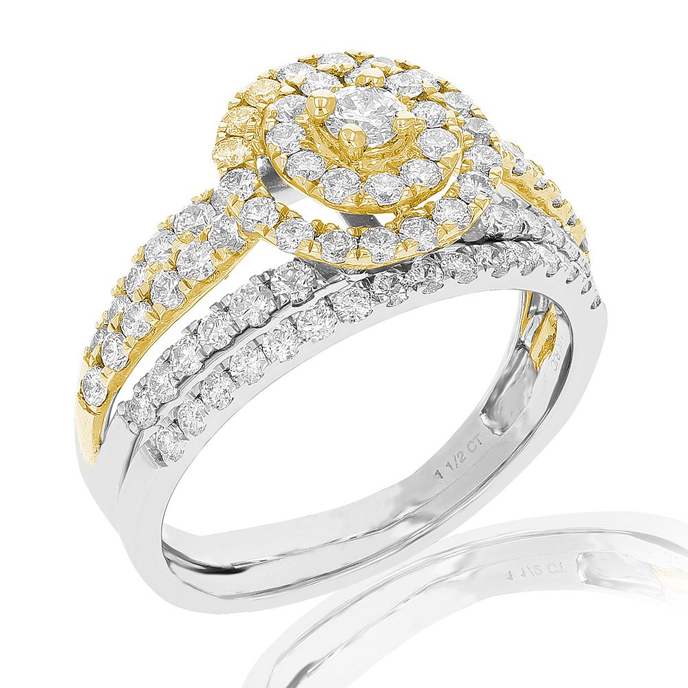 自营vir jewels1 1/4 cttw 钻石婚礼订婚戒指套装 14K 白色黄金光