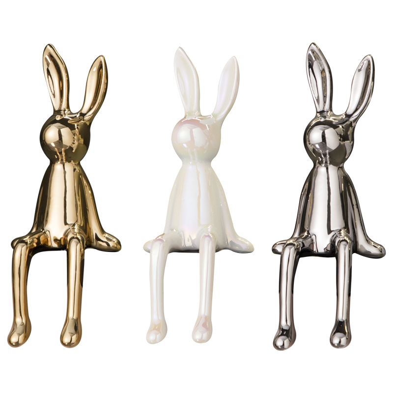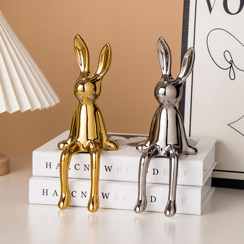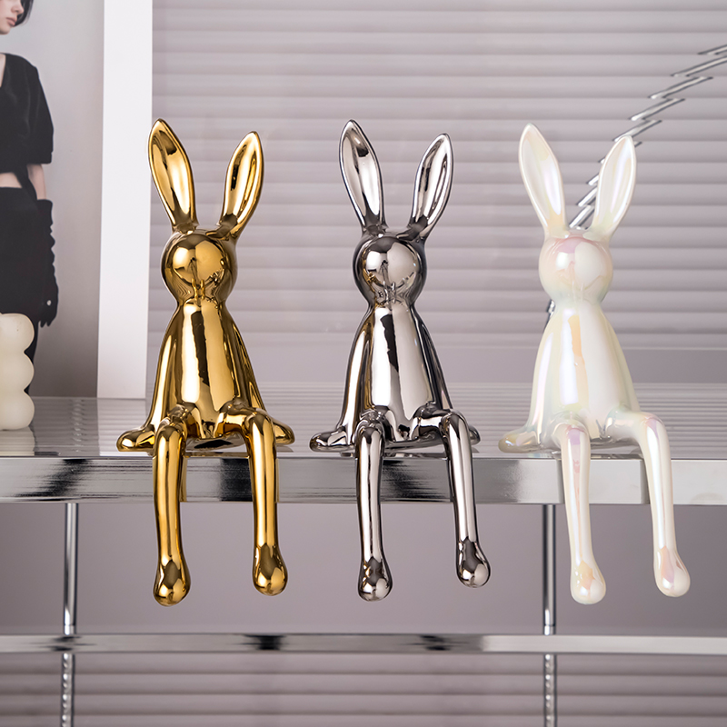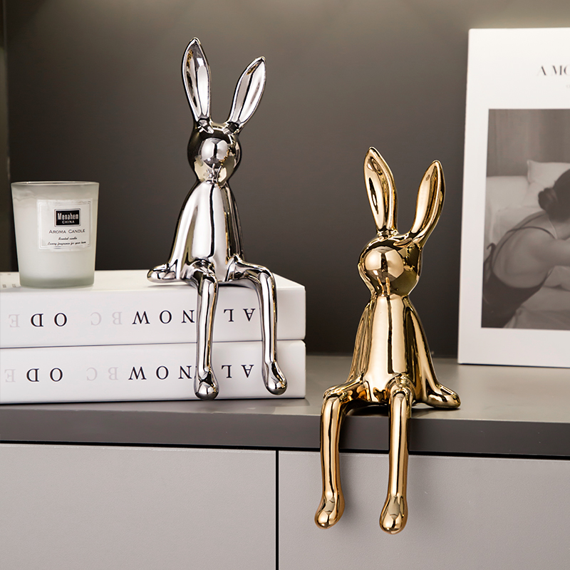 轻奢现代电镀长耳兔摆件家居客厅酒柜电视柜装饰品创意玄关乔迁