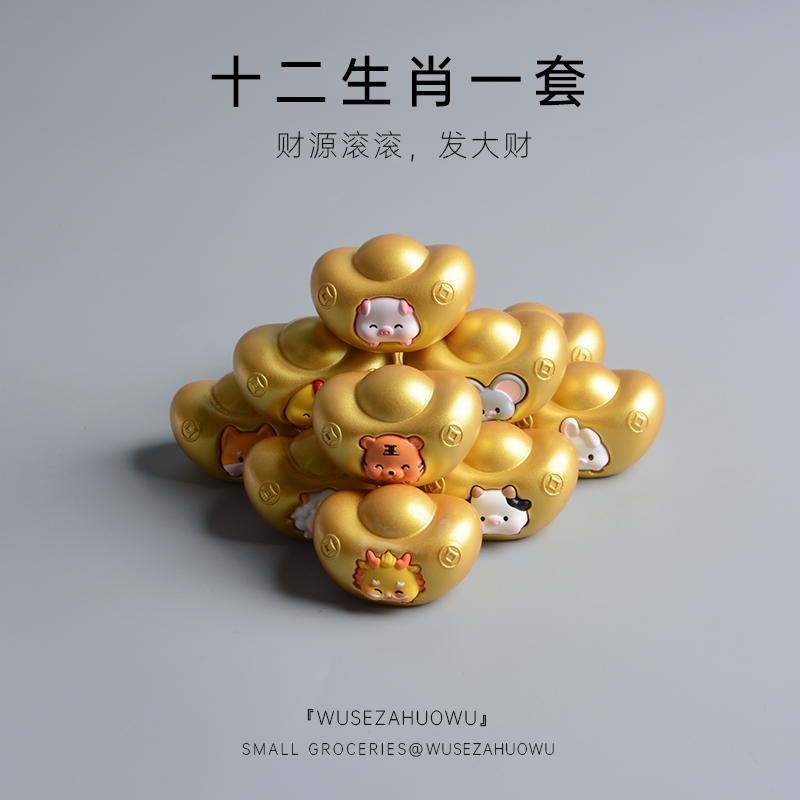 捧个大金元宝十二生肖保发财汽车摆件车载装饰品桌面招财进宝风水
