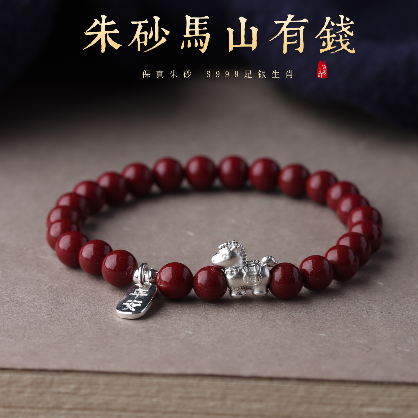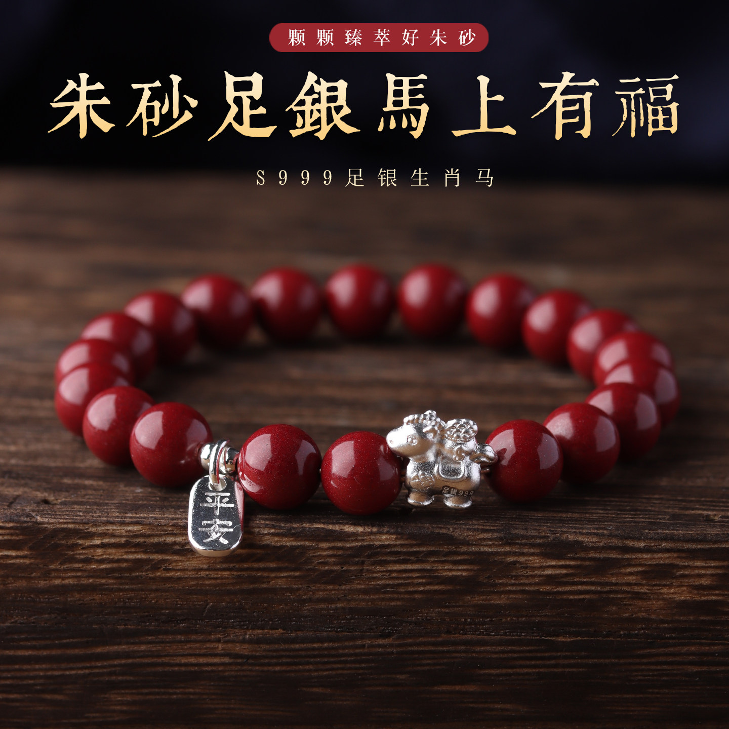 2026年纯银本命年手链女款生肖马足银马上有钱朱砂手串男好运礼物