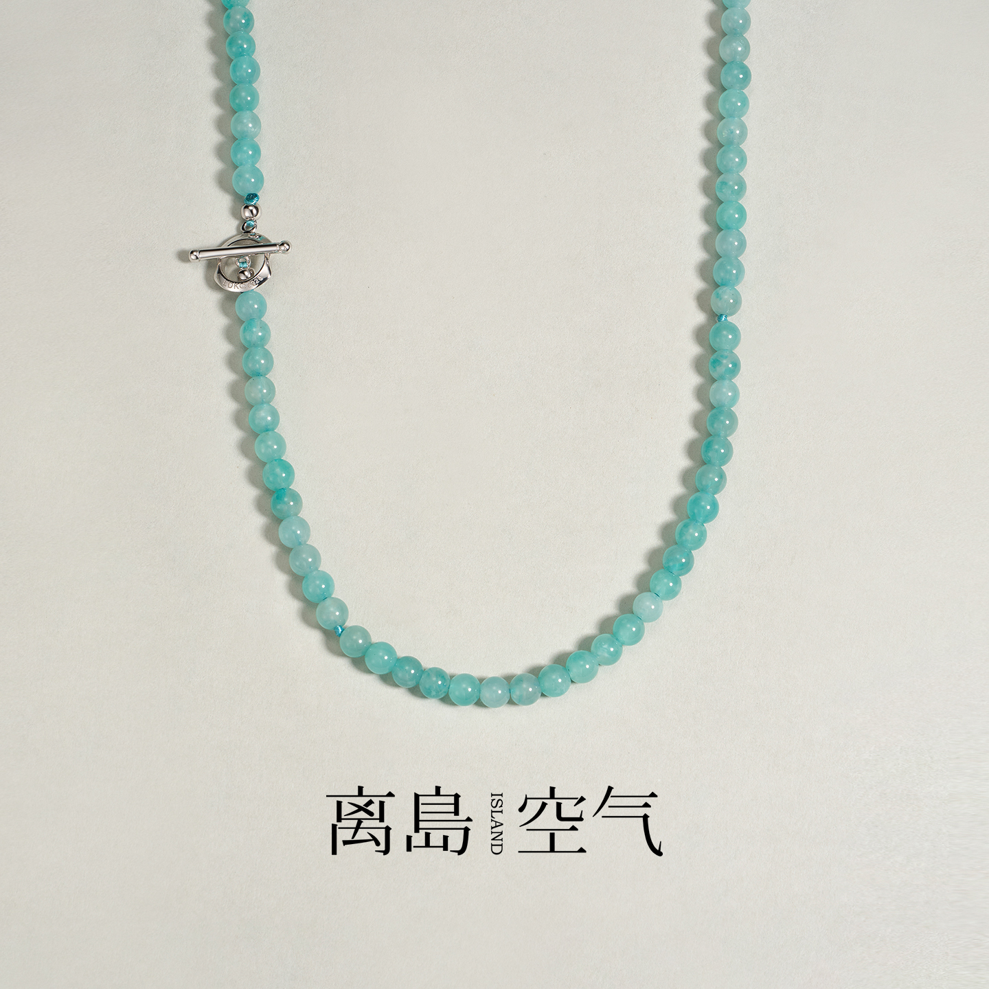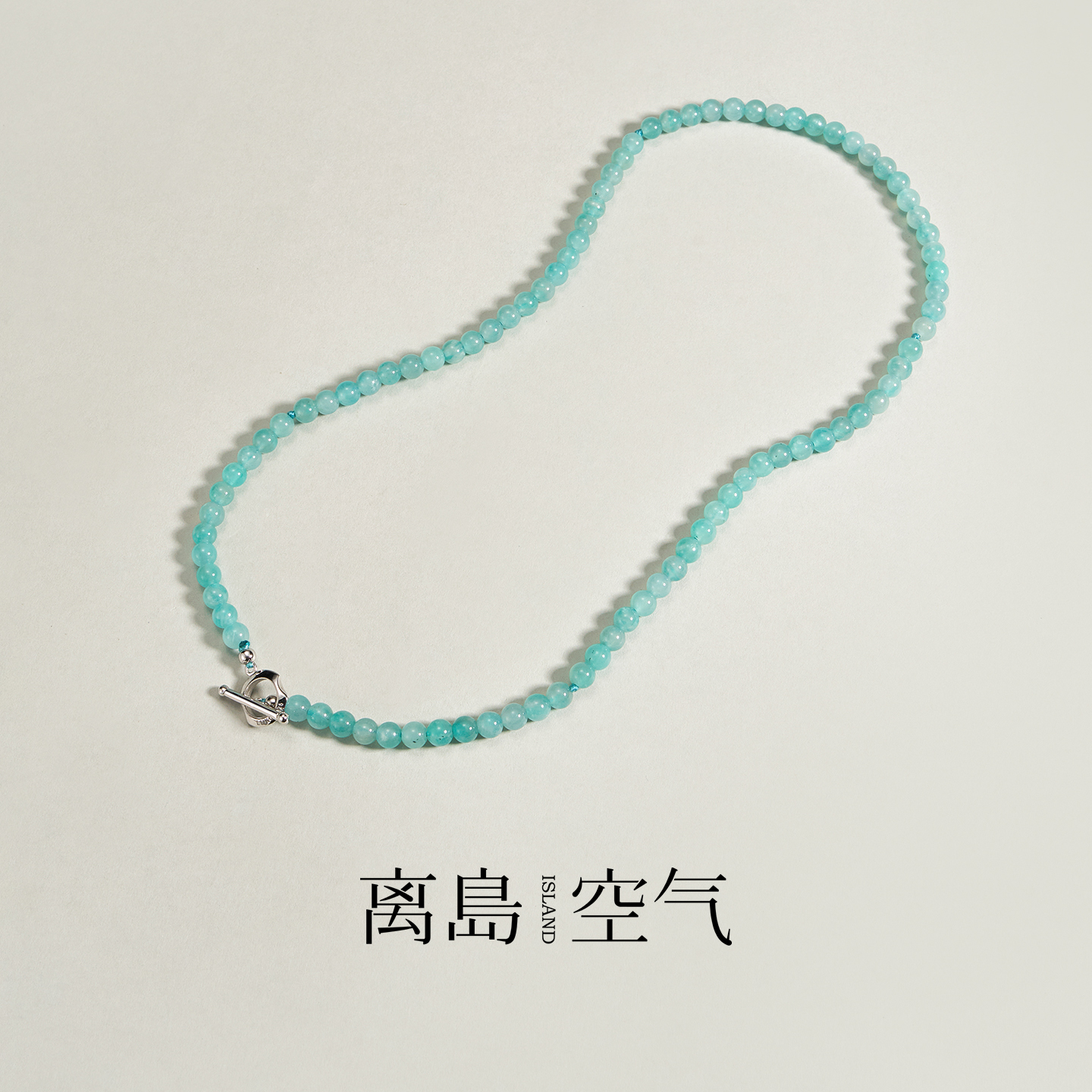 离岛空气清泉S925银亚马逊石项链女新款高级感轻奢锁骨链