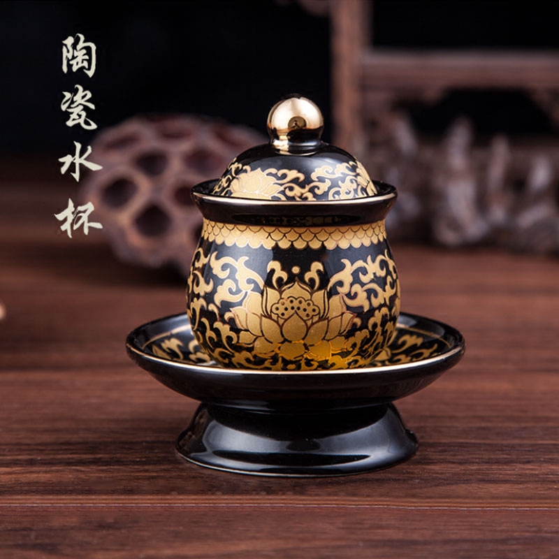 中成黑色无字陶瓷家用熏香炉上供插花瓶供盘净水杯供佛香炉供套装