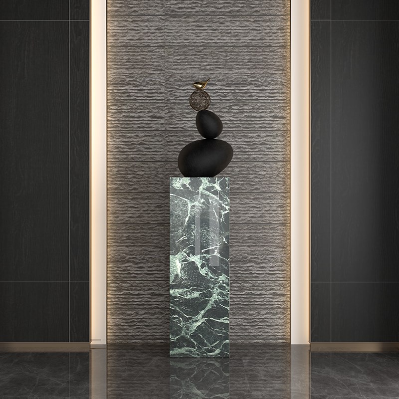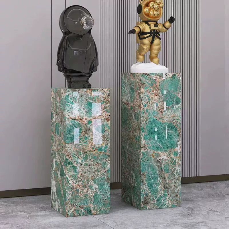 绿色大理石底座雕塑台岩板展示台客厅玄关落地装饰品摆.件轻奢高