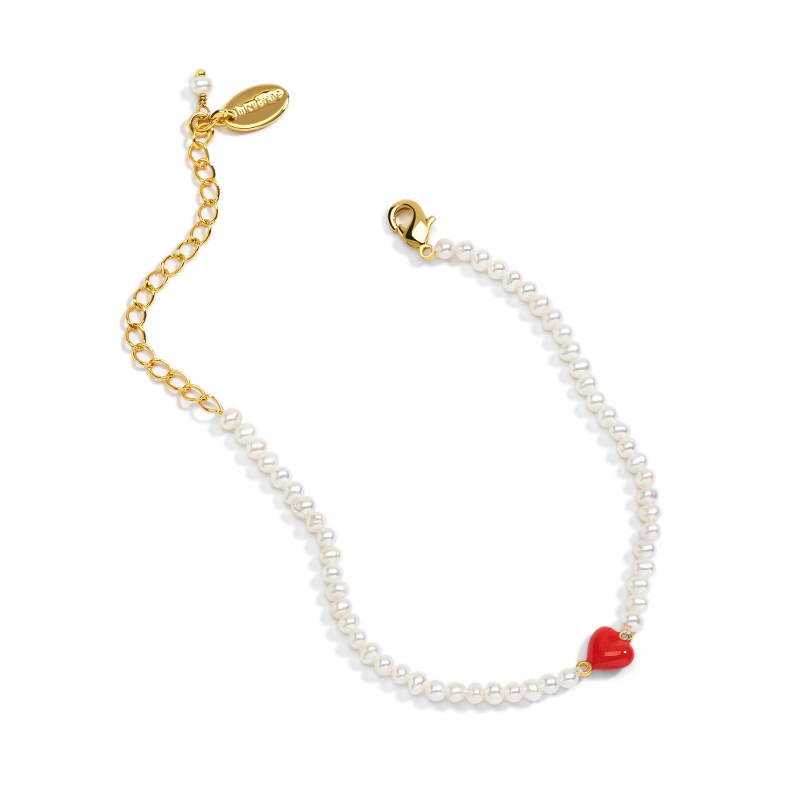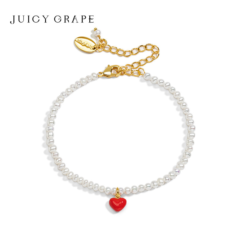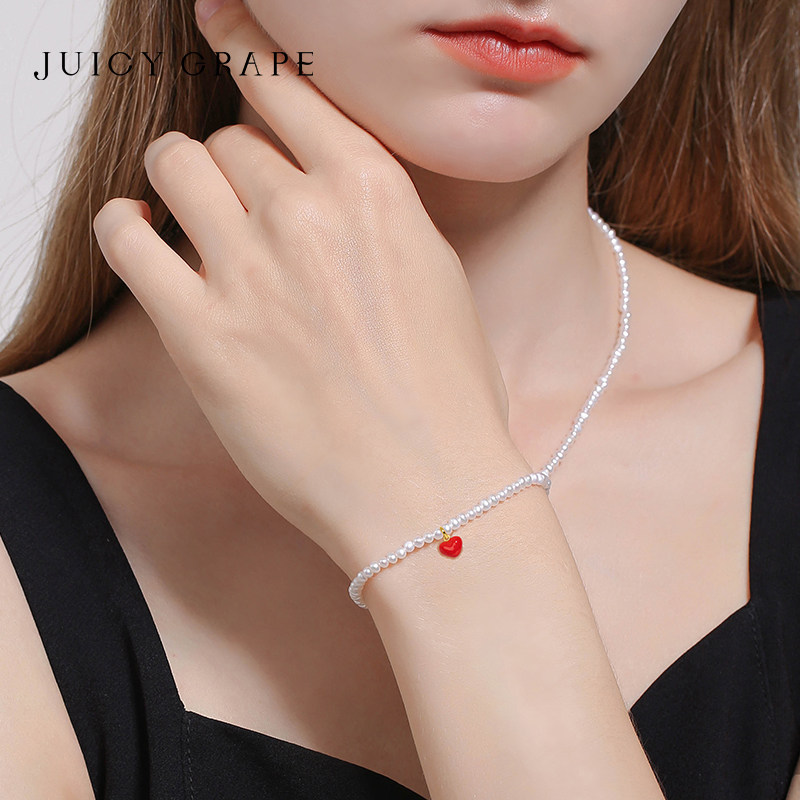 爱心手链女强光小粒淡水珍珠手串气质简约红色桃心手饰送女友礼物