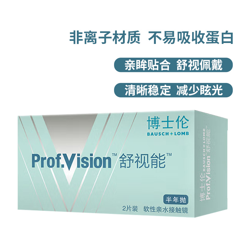 博士伦舒视能透明隐形近视眼镜半年抛2片水润舒适小直径超薄透氧