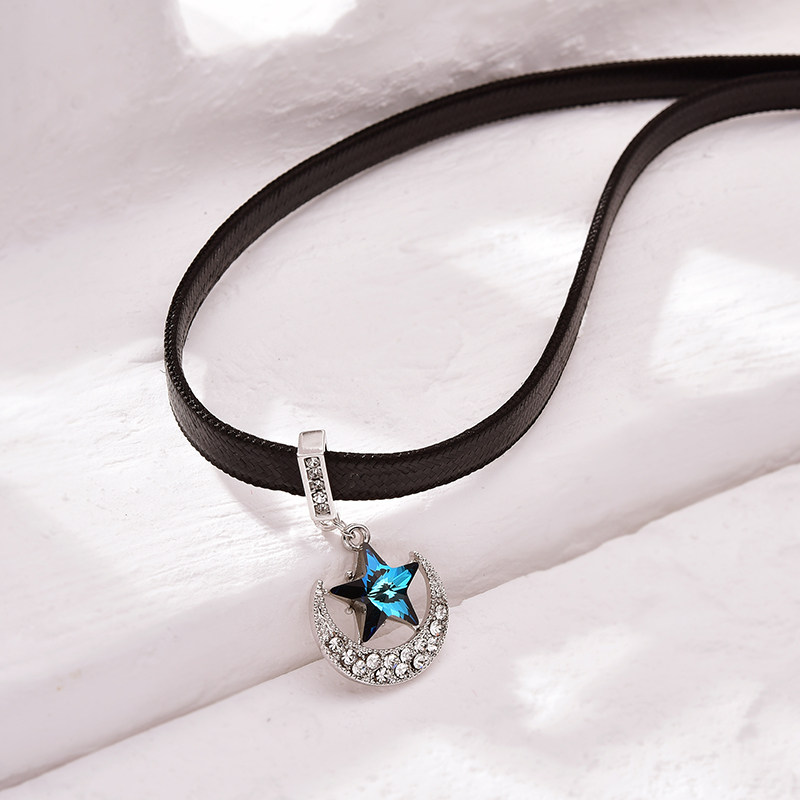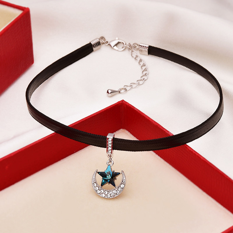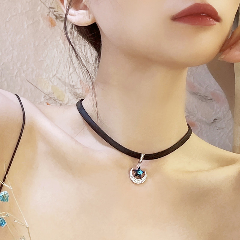 星月吊坠脖颈链锁骨链choker项链女款2025新款项圈黑色颈带甜酷风