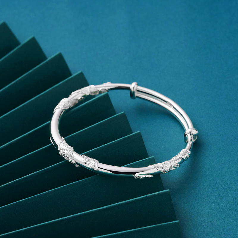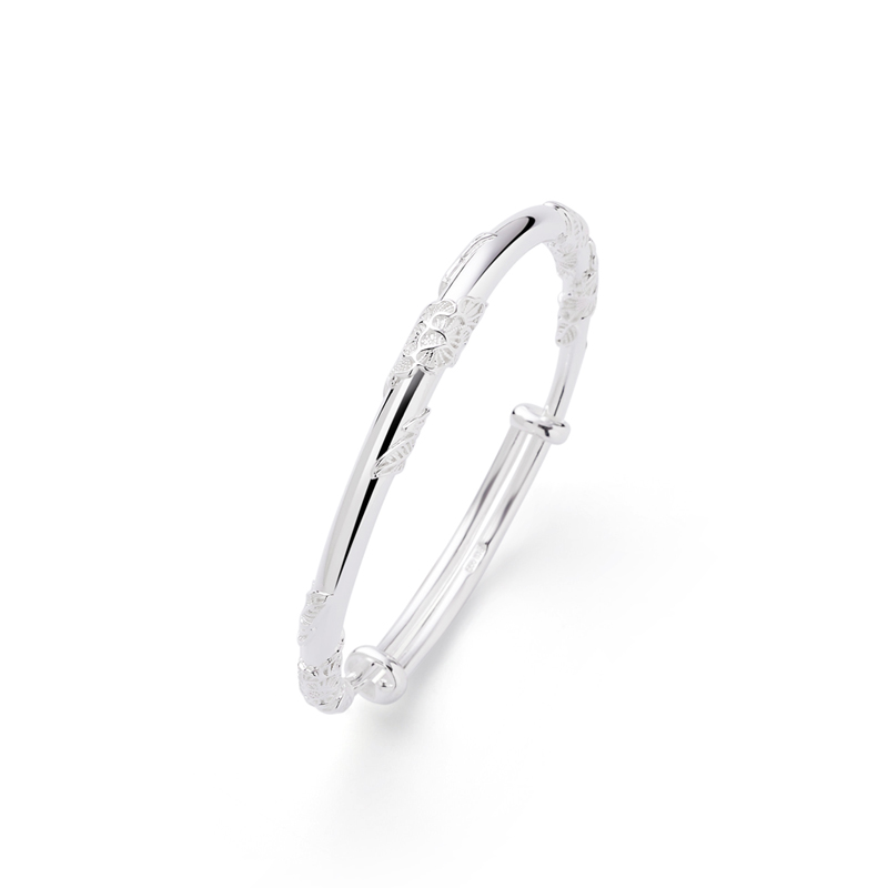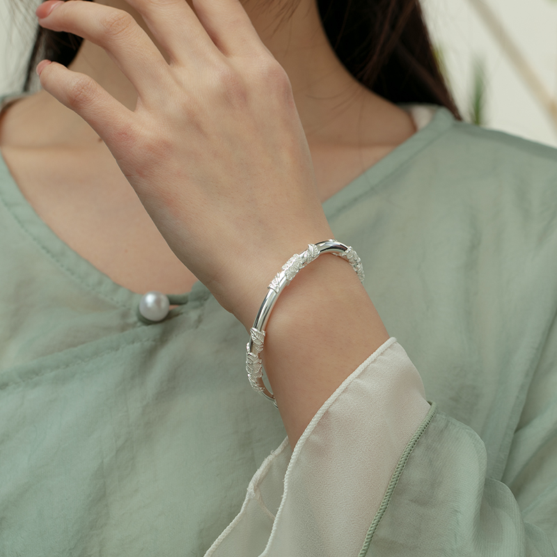 银手镯女纯银9999年轻款手饰品繁花足银镯子实心情人节礼物送女友