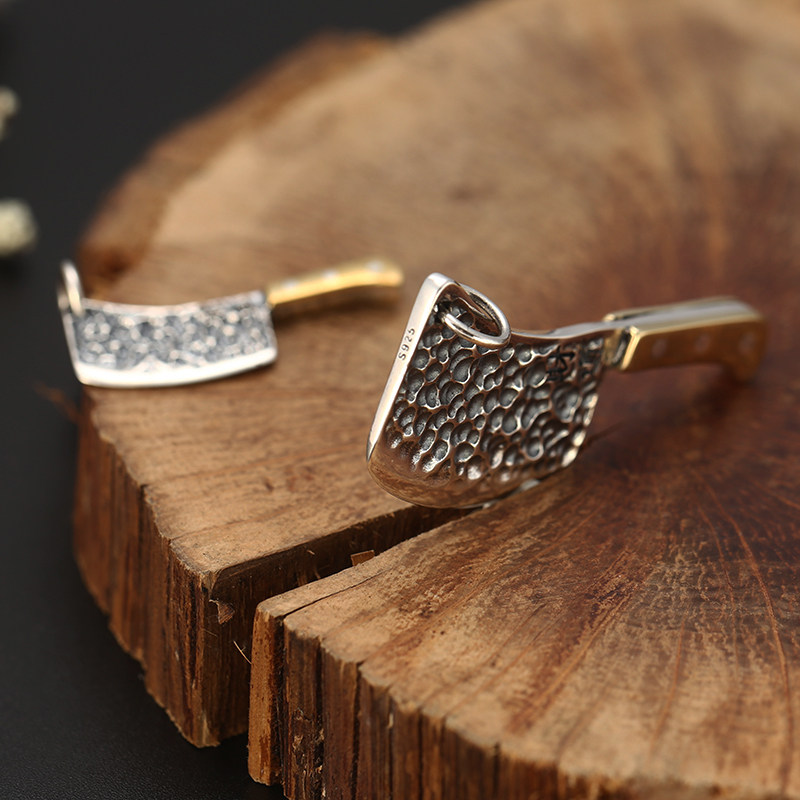 男士纯银个性菜刀吊坠925财道复古霸气小项坠泰银时尚国潮风挂件