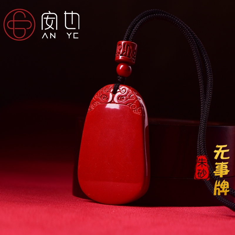 保真正品帝王朱砂平安无事牌吊坠男女款紫金砂高档挂件原石款项链