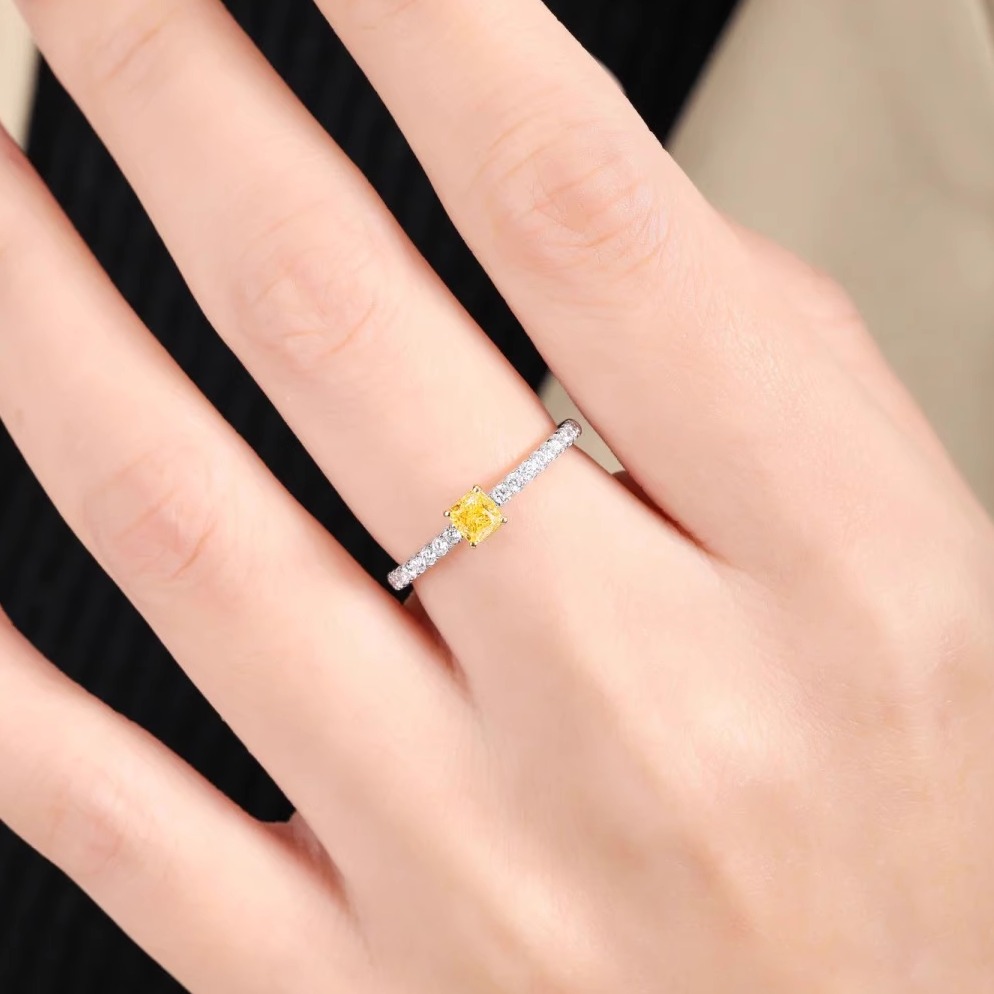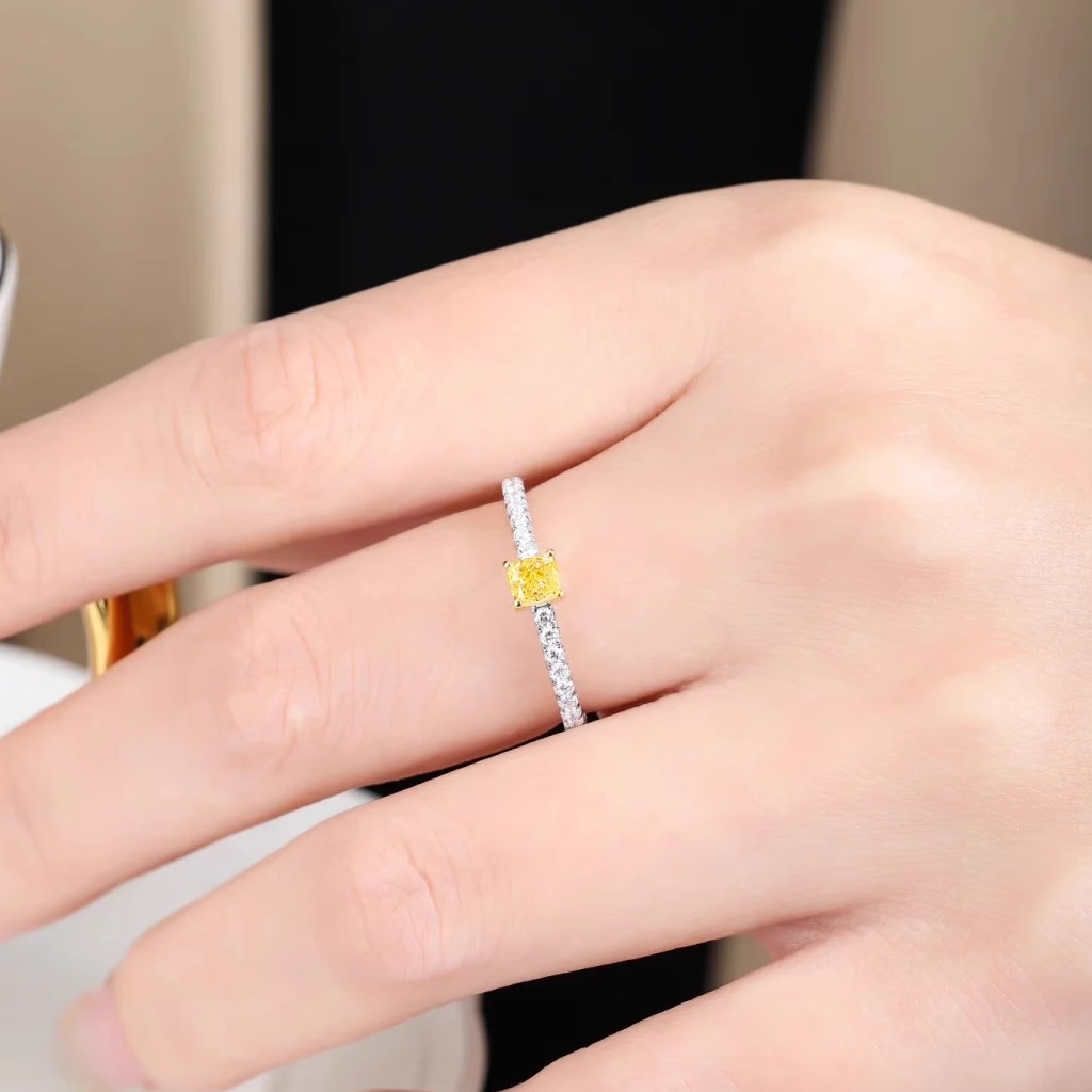 S925纯银莫桑石戒指公主方钻群镶彩色钻戒正方型食指戒副戒指女款