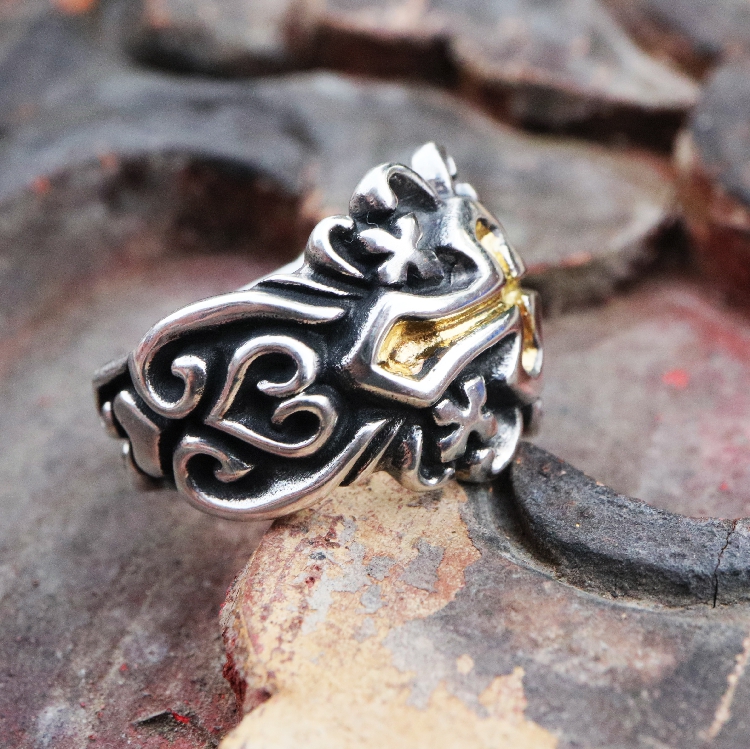 铁头的店Abbwlll十字鎏金戒指 美式机车厚重个性款925纯银指环