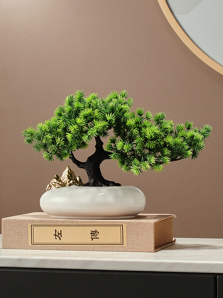 新中式迎客松植物金山银山家居室内客厅玄关屏风创意装饰内装盆景