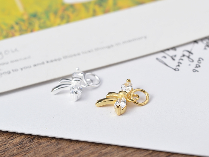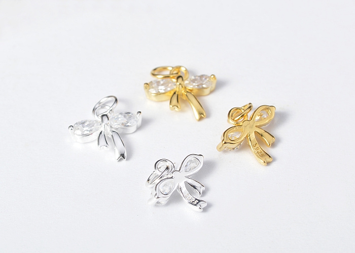 S925纯银微镶配件 锆石蝴蝶结吊坠 手工diy串珠材料手链项链配饰