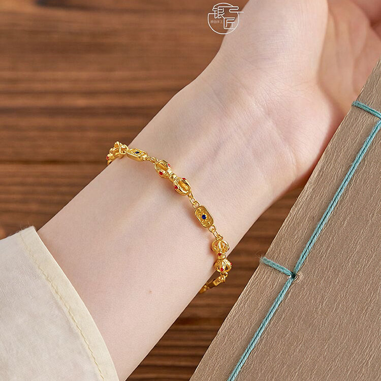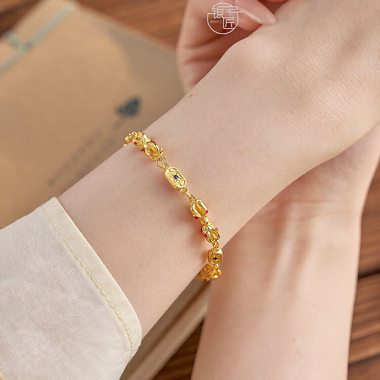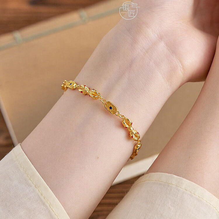 银匠 [多吉] 国风新中式足银999.9描金轻奢个性金刚杵手链男女