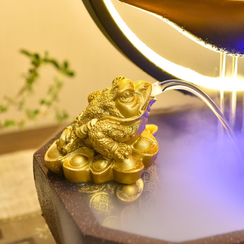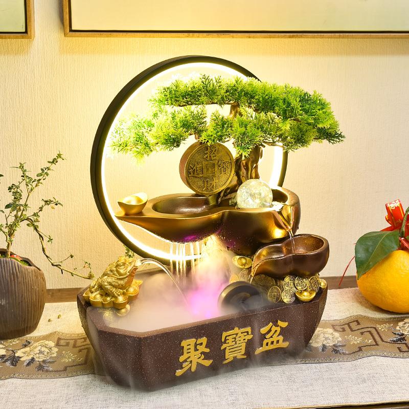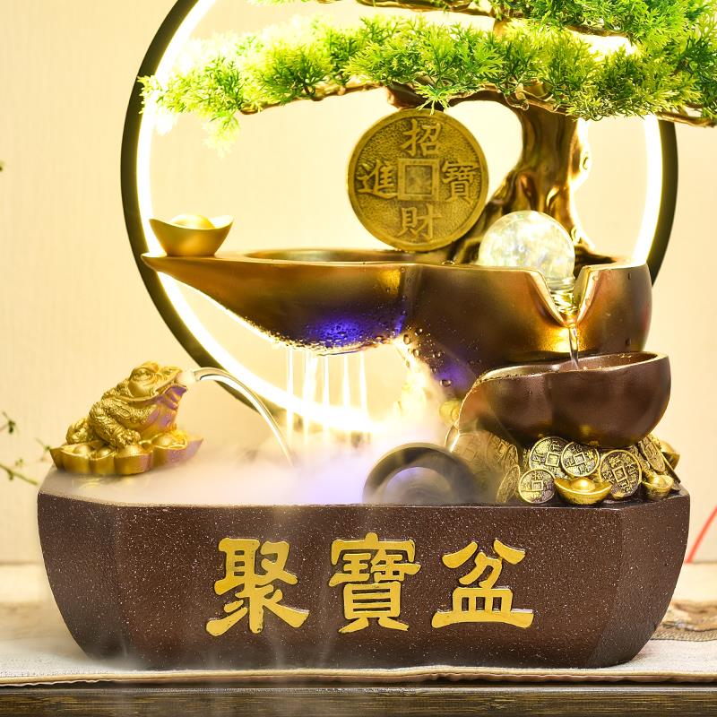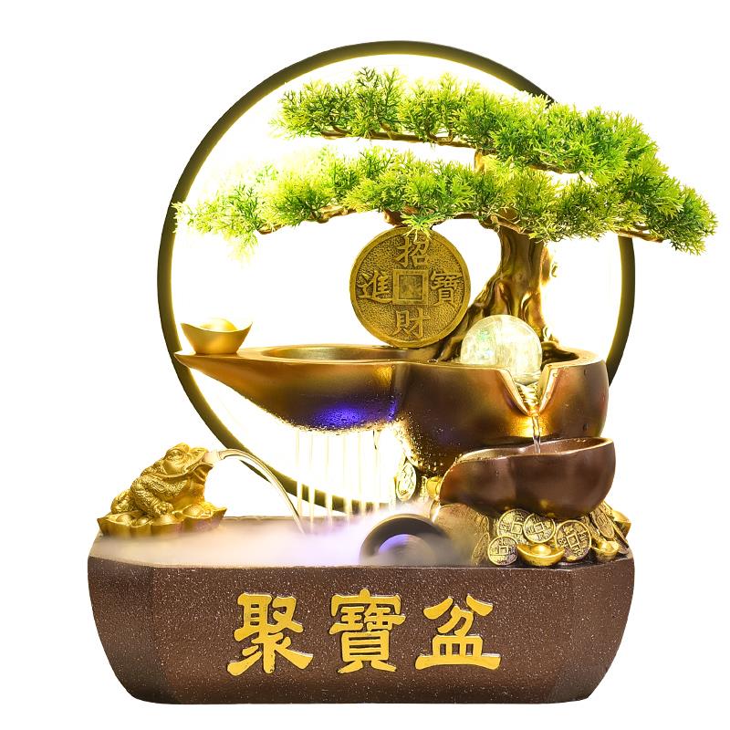 招财聚宝盆中式开业礼物流水摆件循环水公司店铺桌面风水轮装饰品
