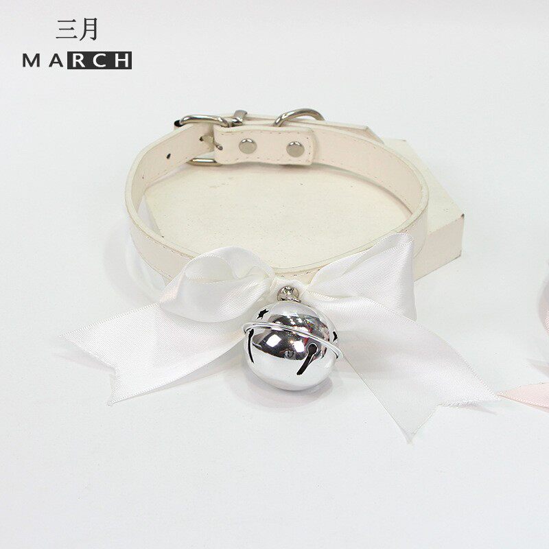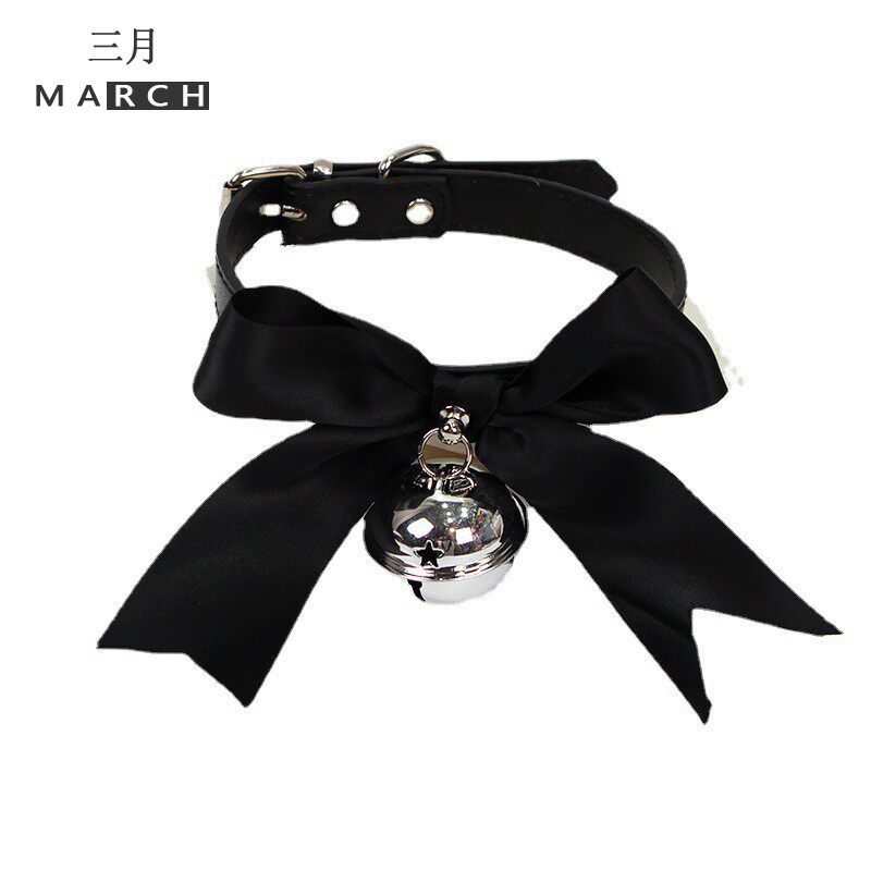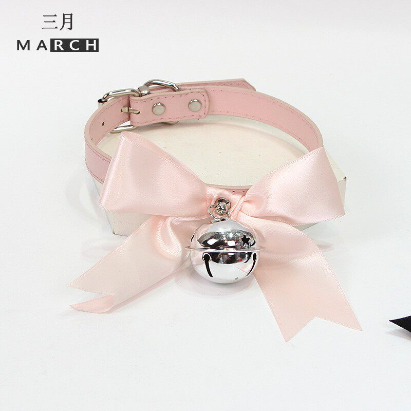人带项圈女m牵引绳铃铛男生蝴蝶结女朋友锁骨链choker摇铃变装粉