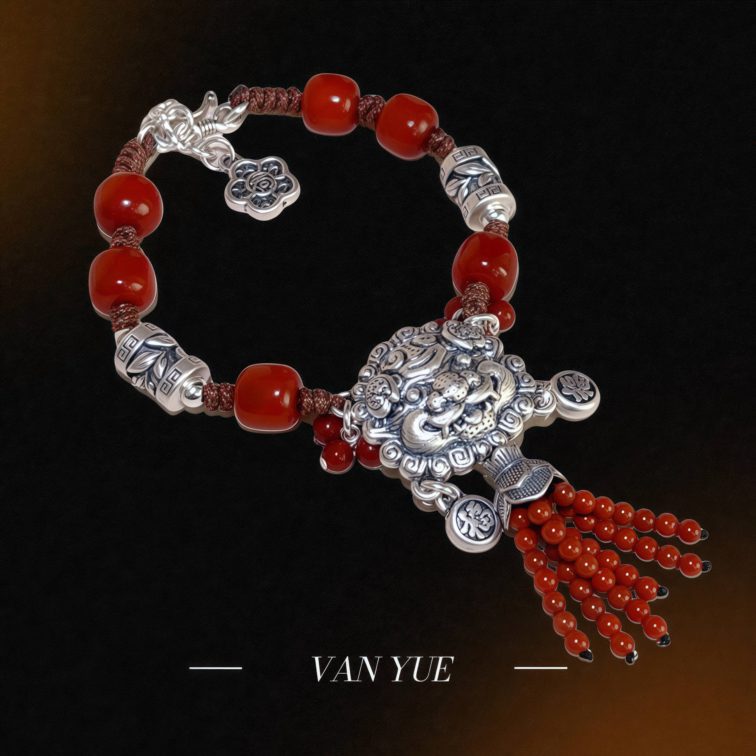 999足银醒狮项链手链玛瑙原创设计古风配饰原创设计饰品小众礼物