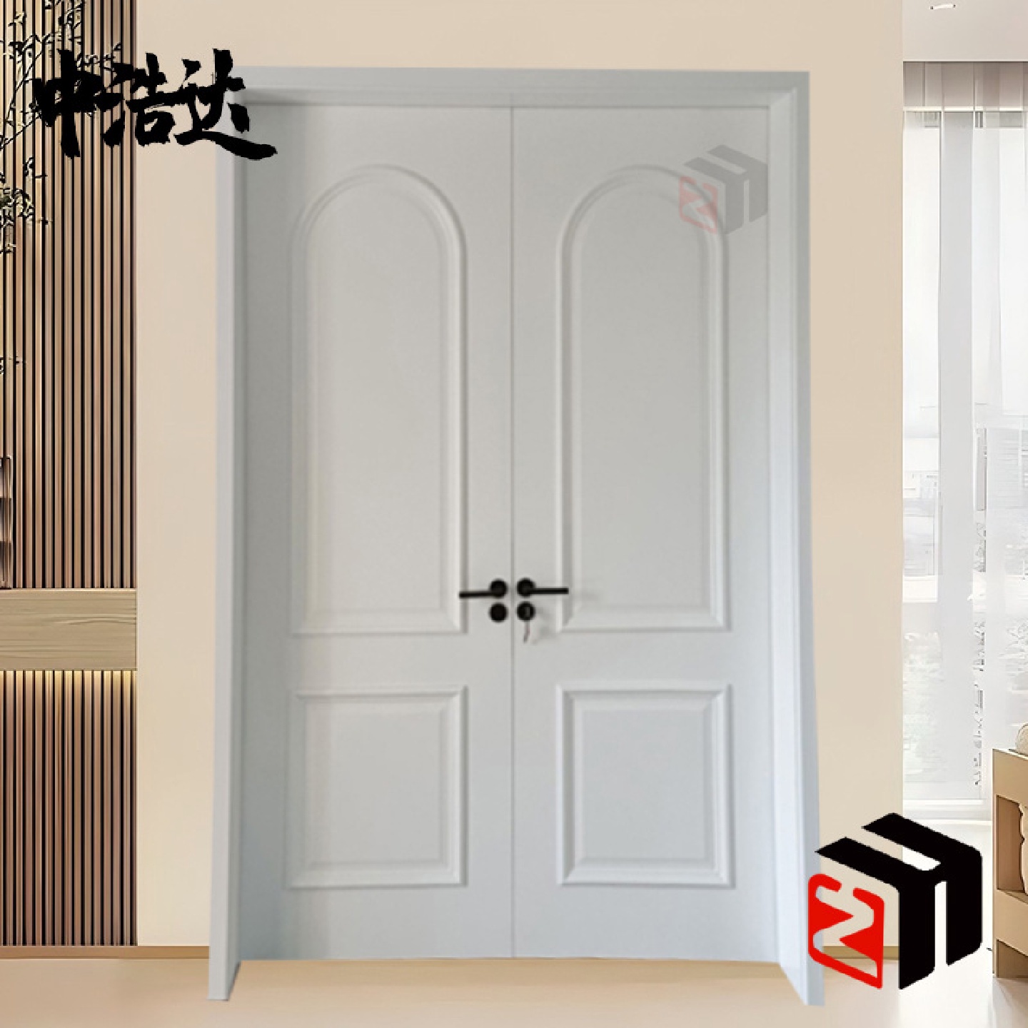 中浩达门业实木烤漆门办公室双开门木门卧室门法式双开门双开木门