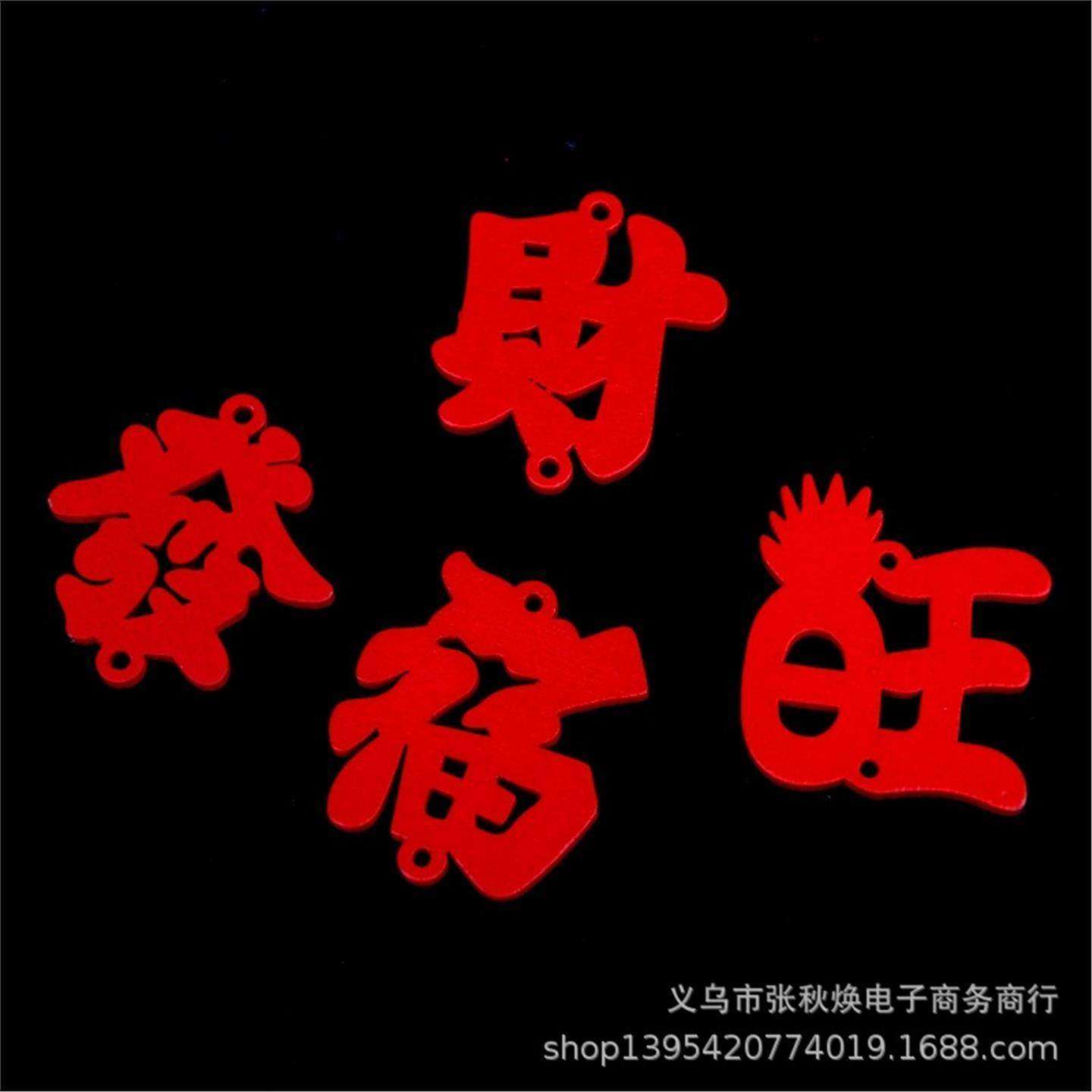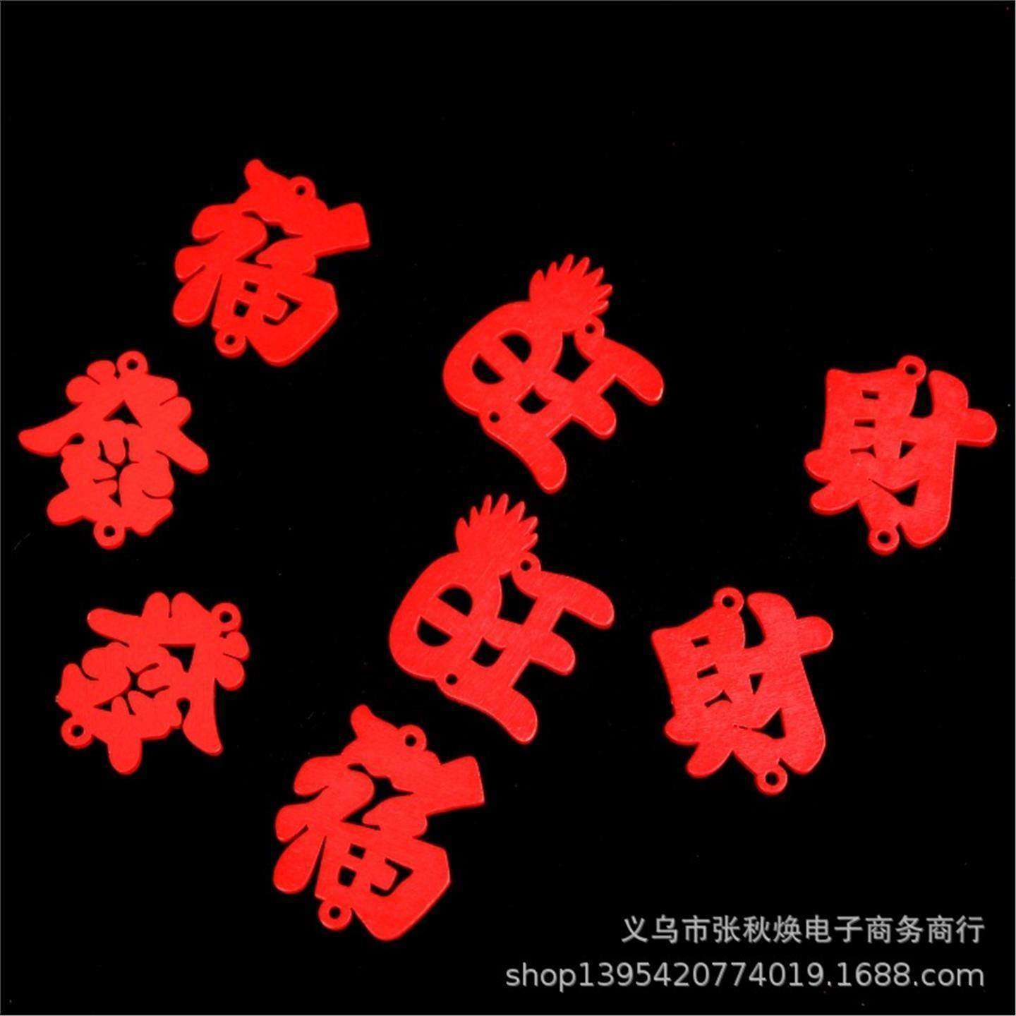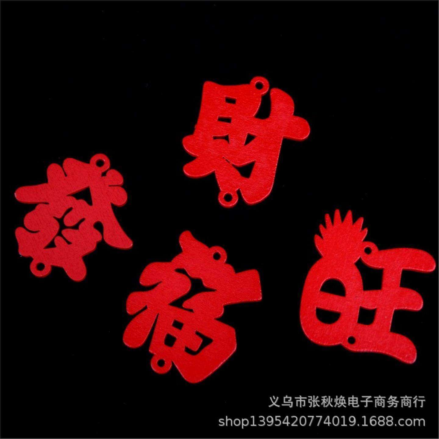 兔年新品红色木质牌福旺字体配件植物小挂件装饰盆景喜庆装扮用品