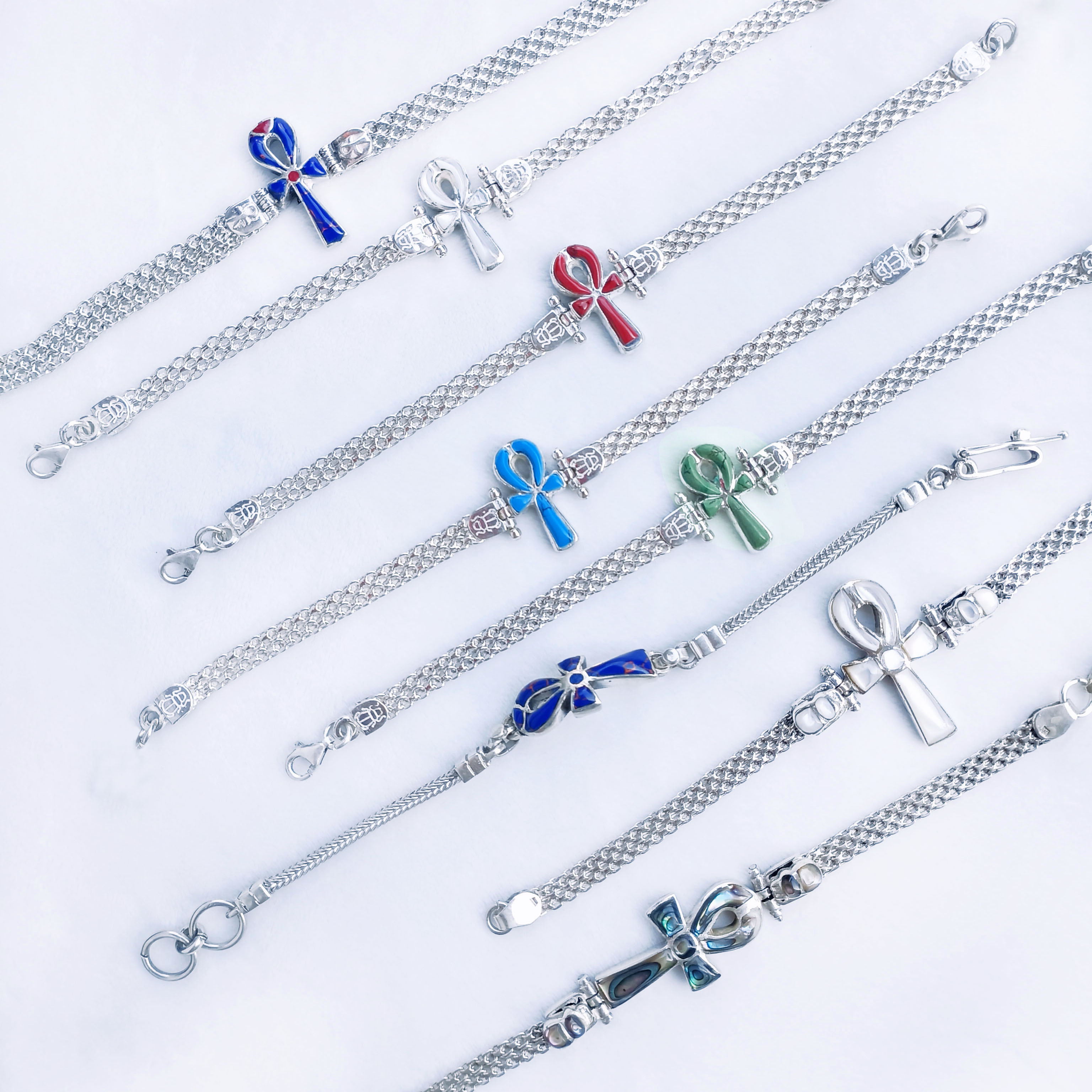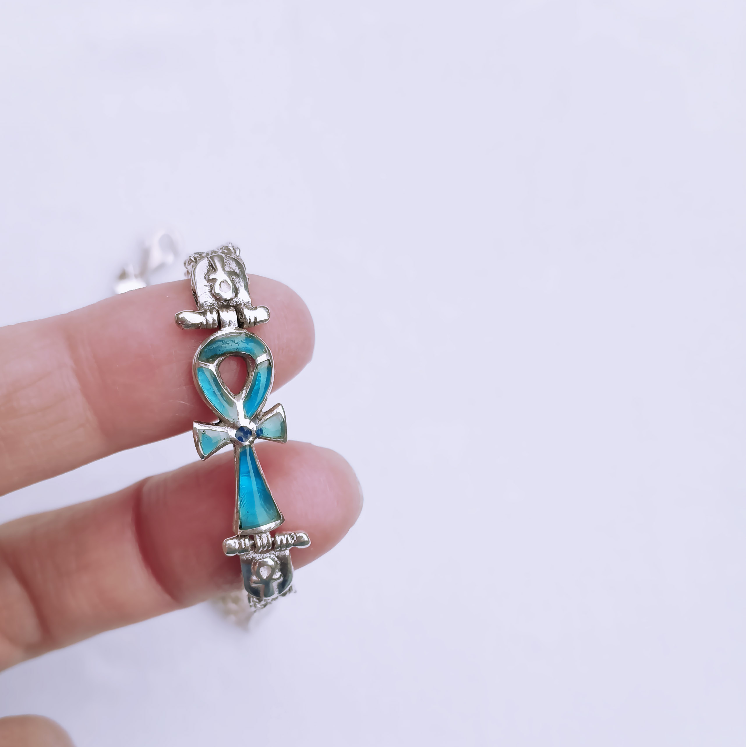 进口古埃及风流行首饰镶嵌安卡安克生命之匙十字架手工银手链新品