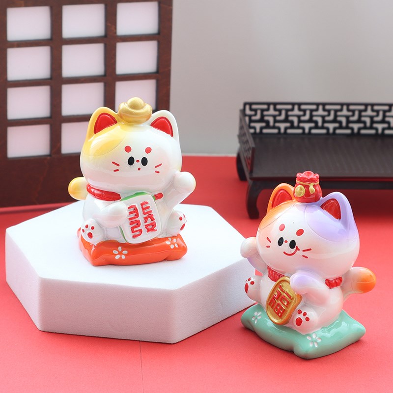 可爱招财猫桌面小摆件桃花运好运猫咪玩偶工位汽车装饰品开业礼物