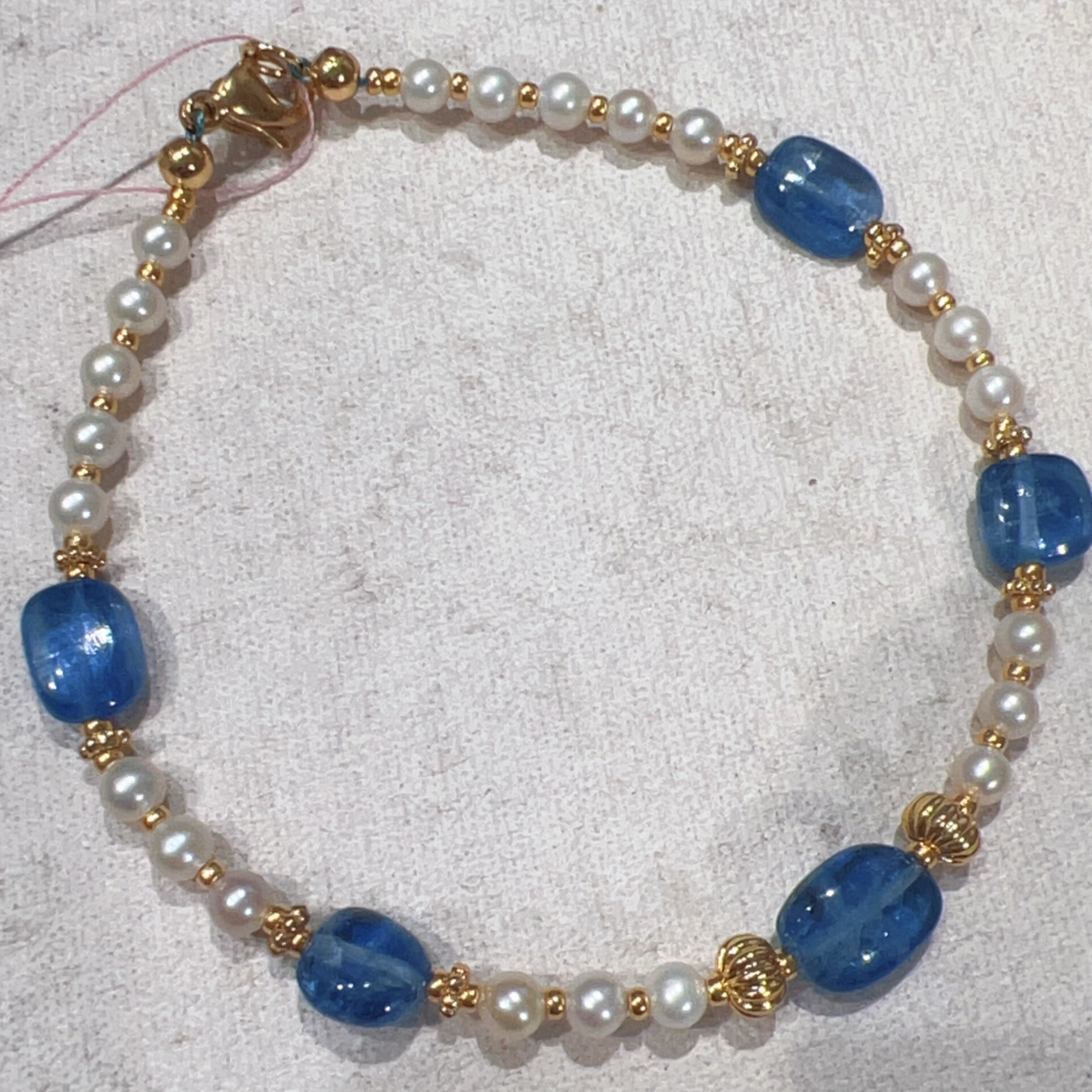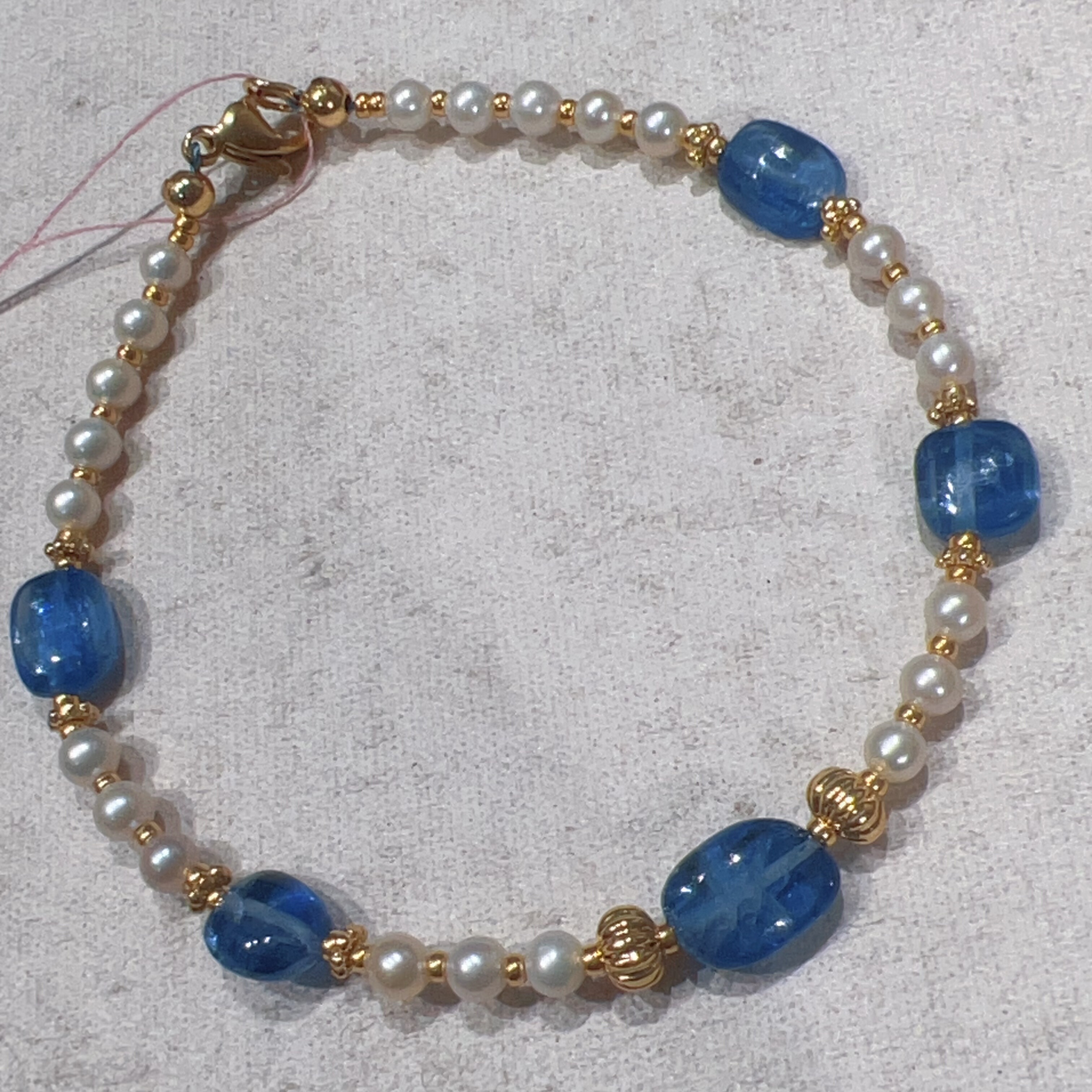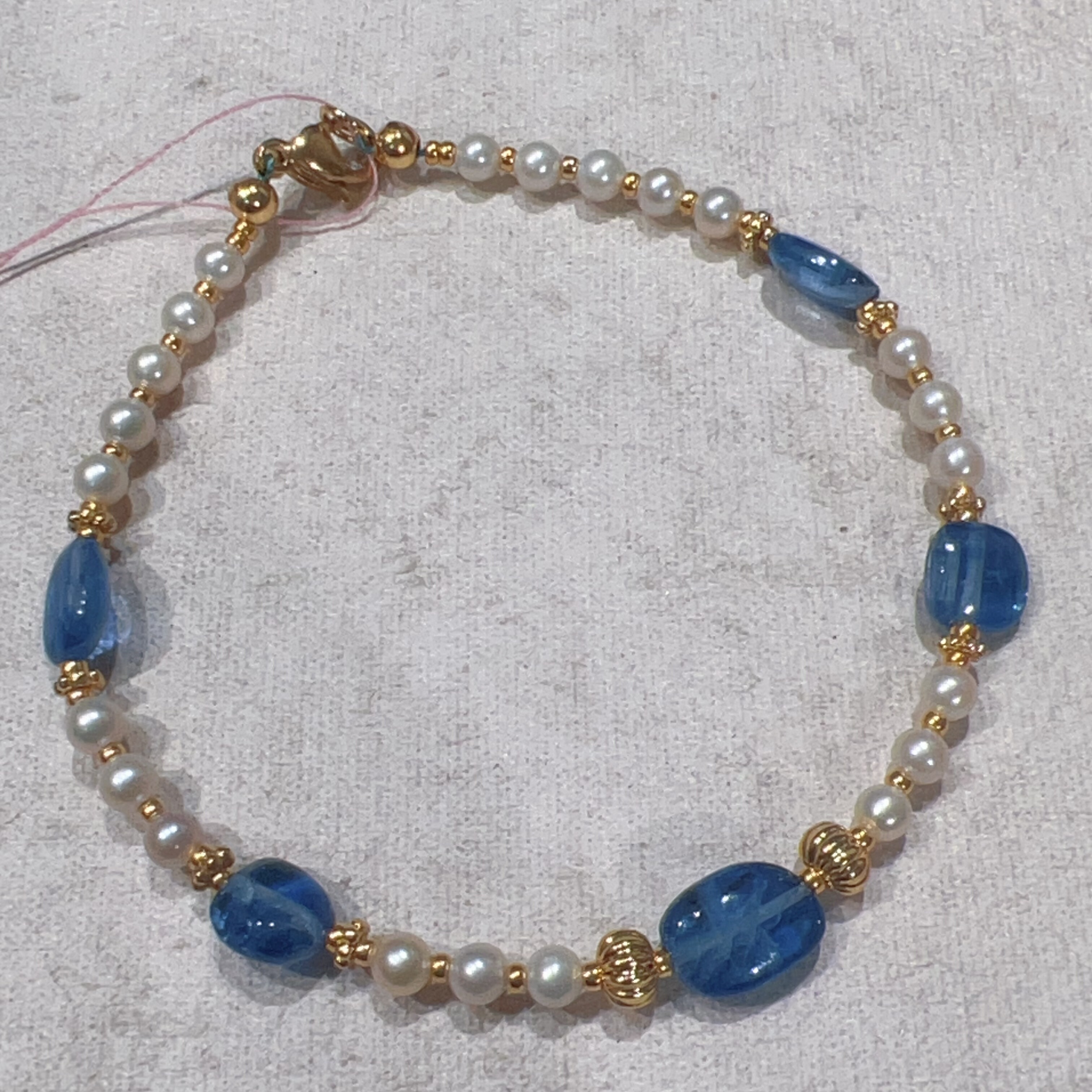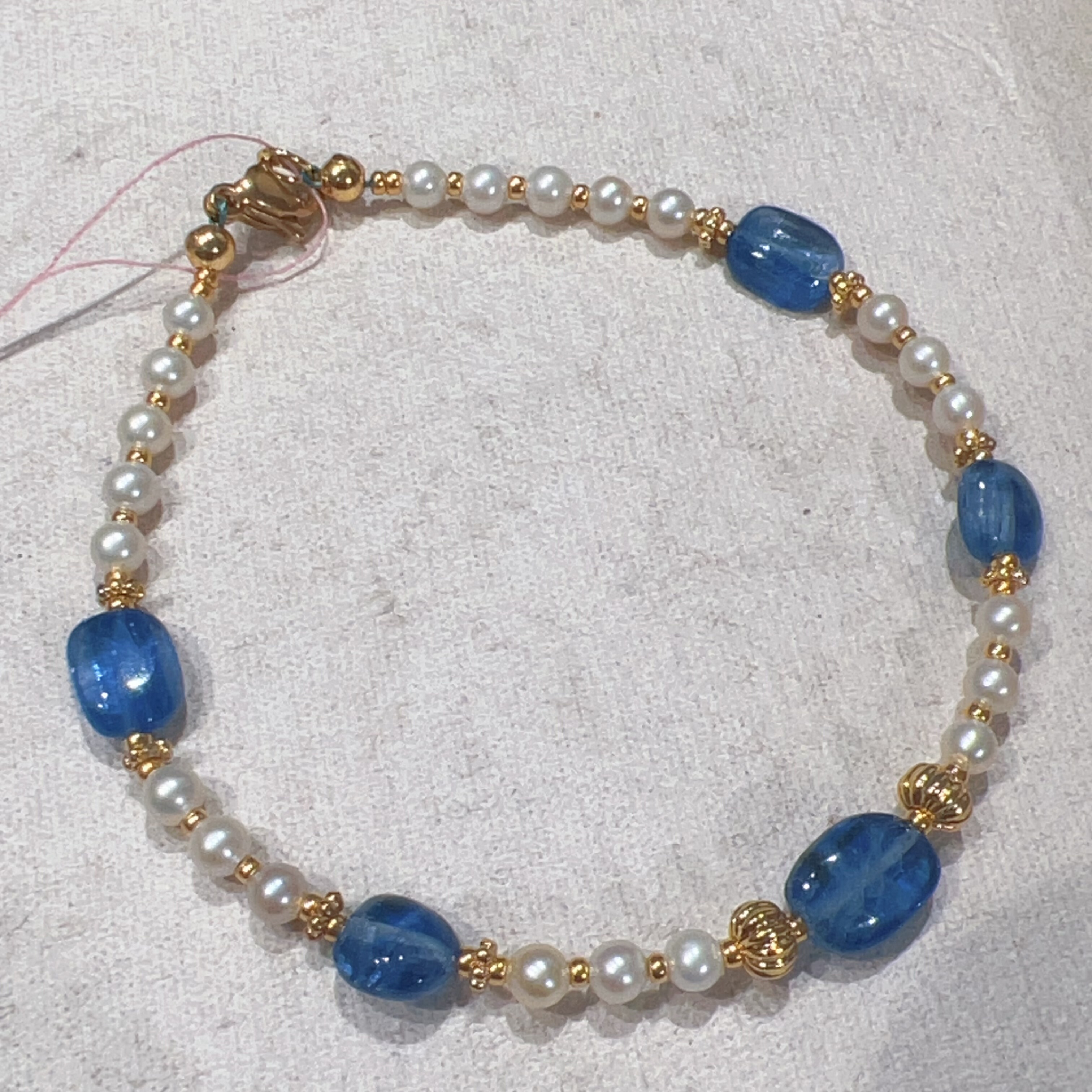 天然淡水珍珠正圆小米珠3mm蓝晶石糖豆镀金女款原创设计手链小香