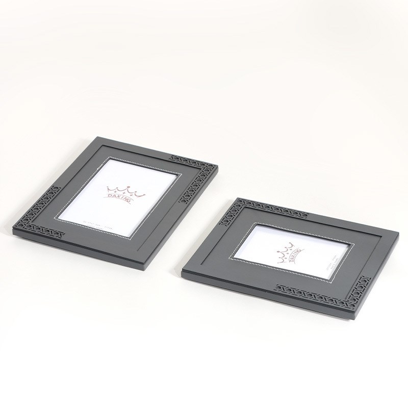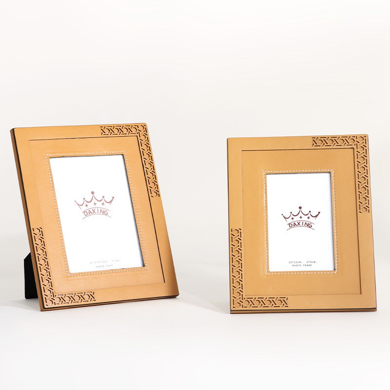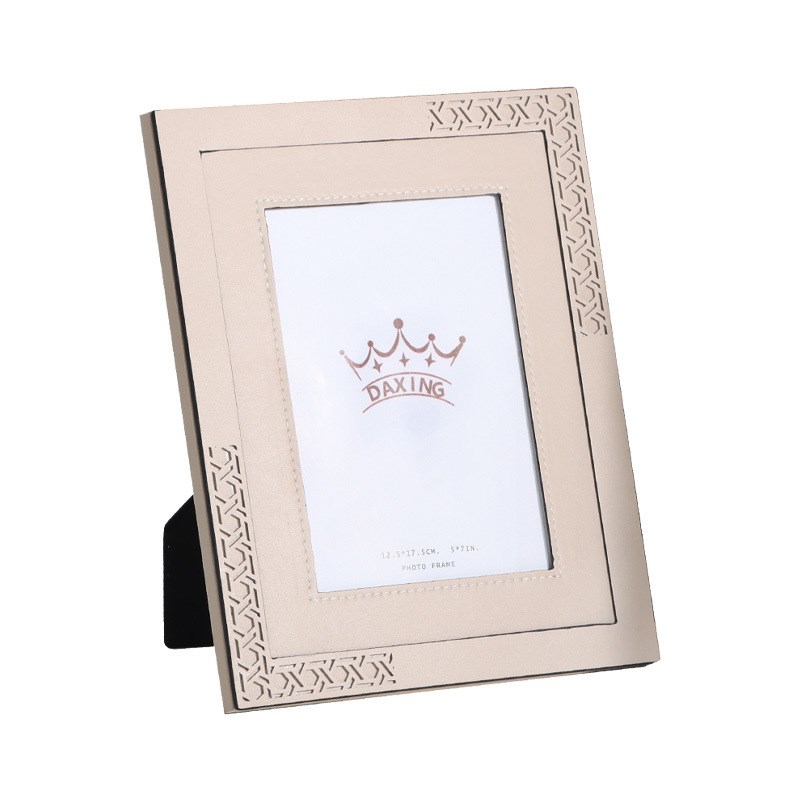 简约现代卡其色超纤皮革寸寸长方形相框家居风W摆件主卧装饰