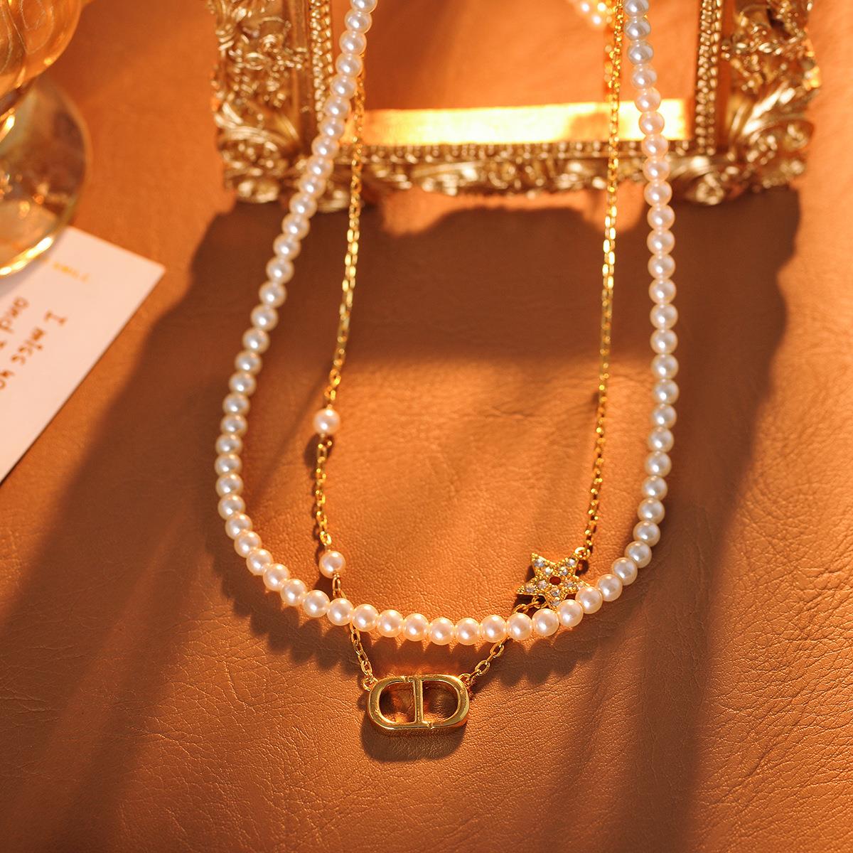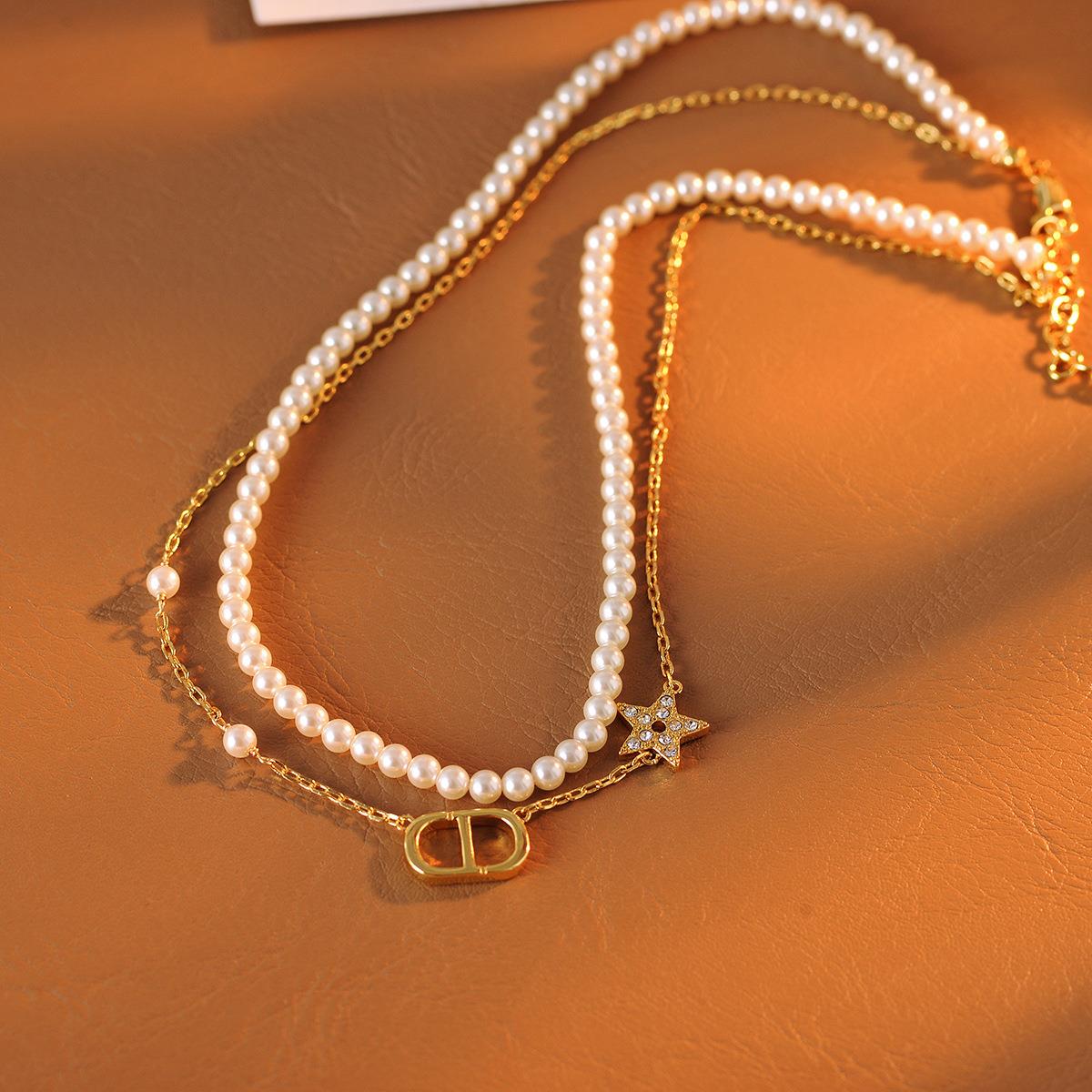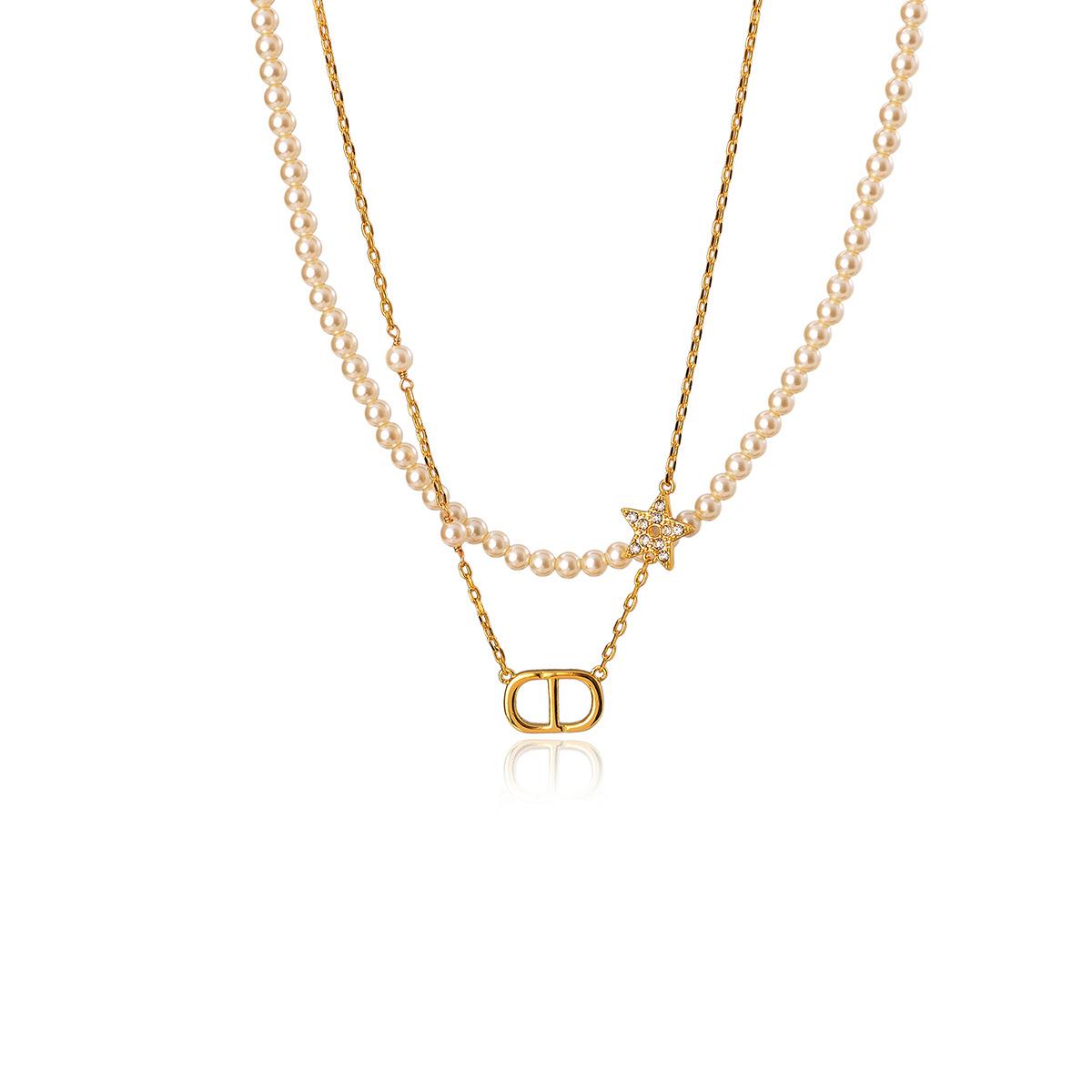 2025新款猪鼻子手链项链珍珠项链轻奢时尚字母五星双层叠戴
