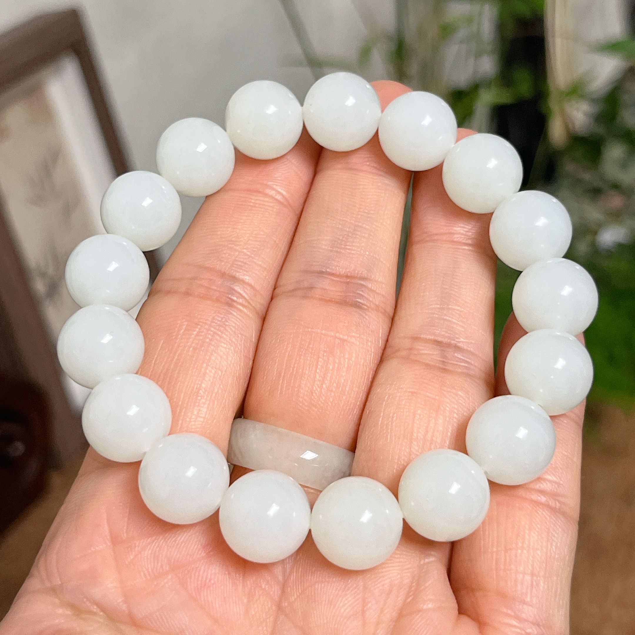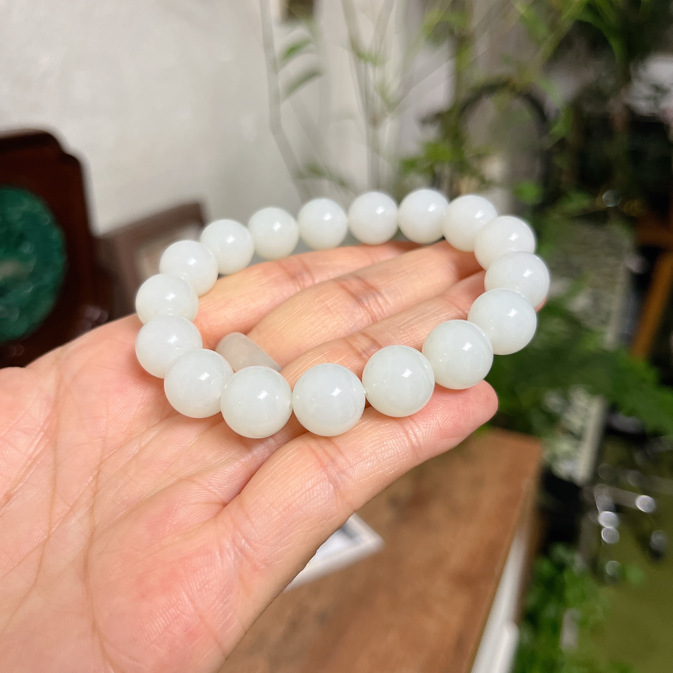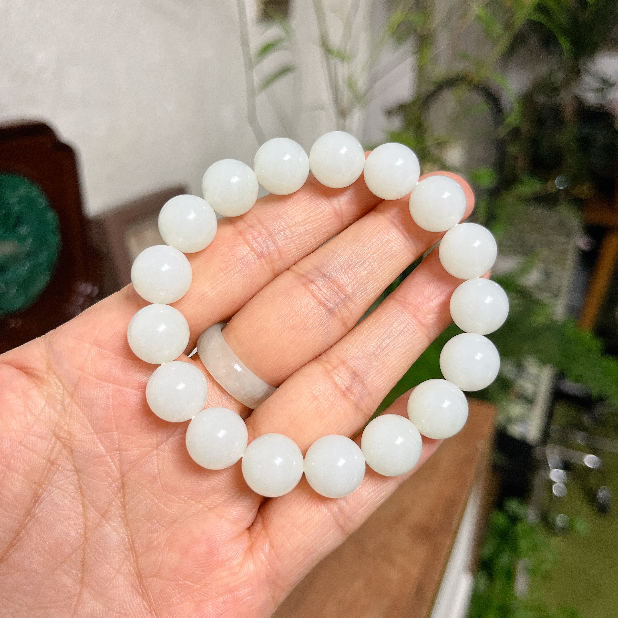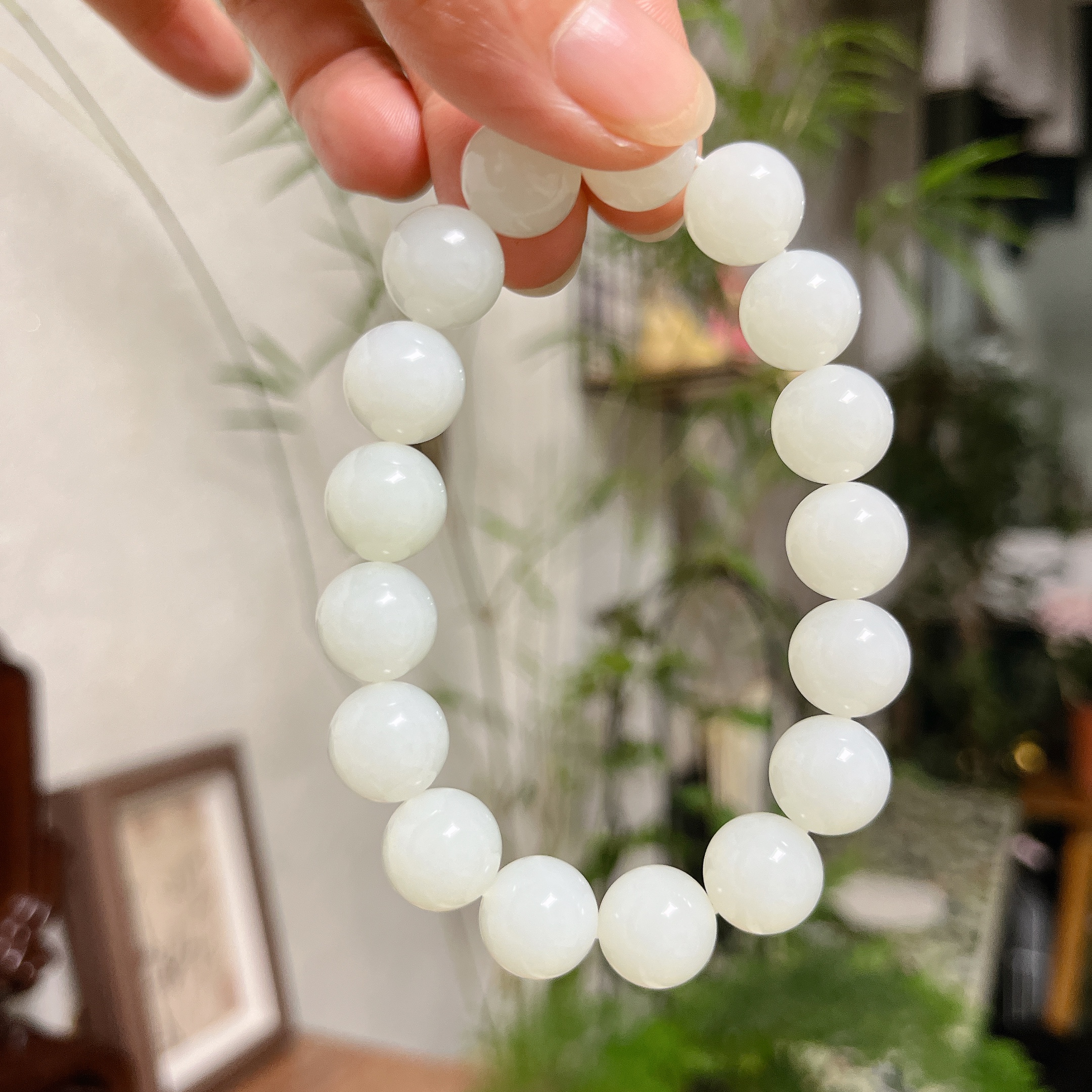 可言坊天然和田玉精品白玉油润质感一物一证卡12男女圆珠手串链