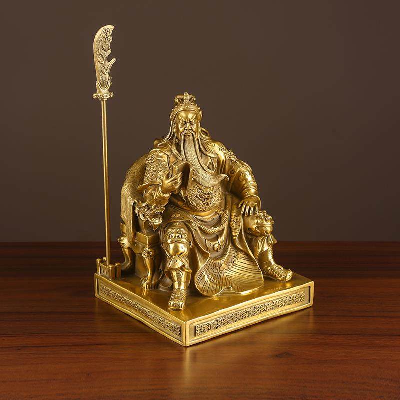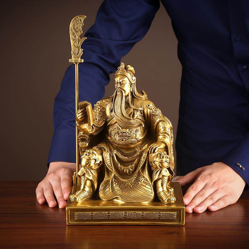 高档黄铜关公件《看书关公》武财神关爷摆羽关二办公室装饰品开业