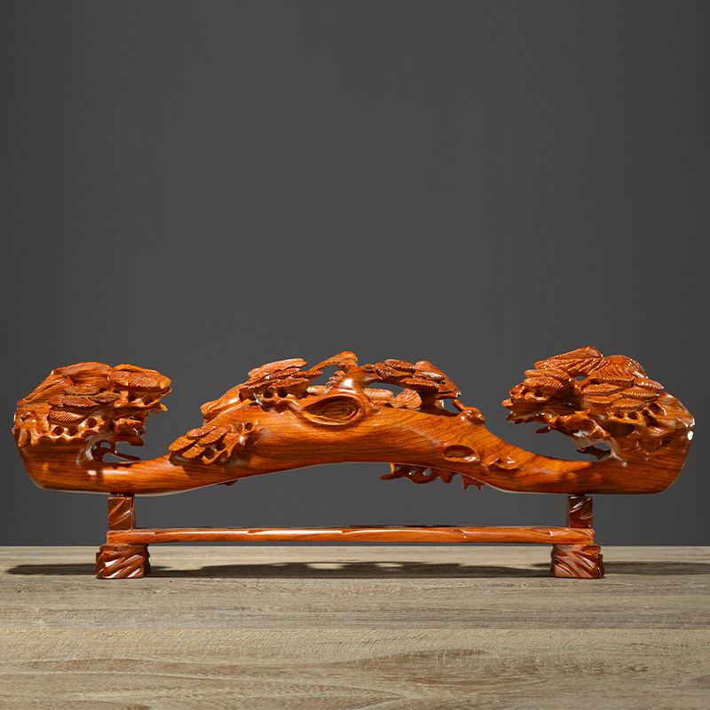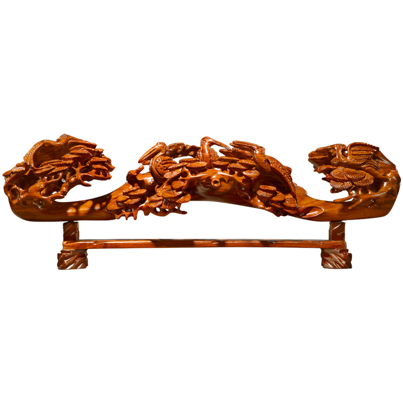 花梨木雕松鹤延年如意摆件中式客厅实木装饰品雕刻工艺品送礼礼品