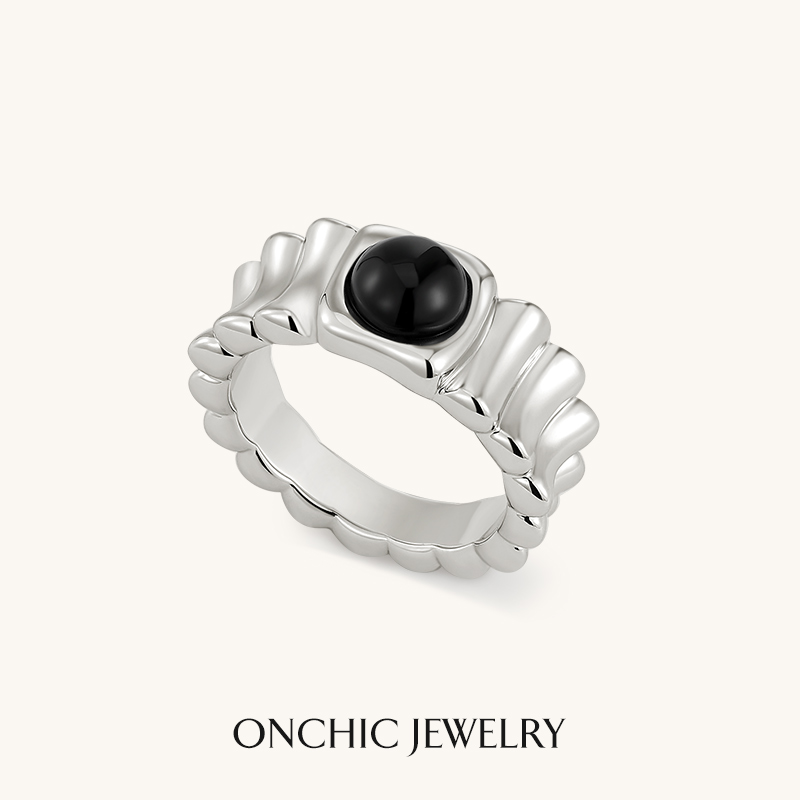 明星同款OnchicOR系列山云戒指女黑玛瑙小众设计食指戒高级感