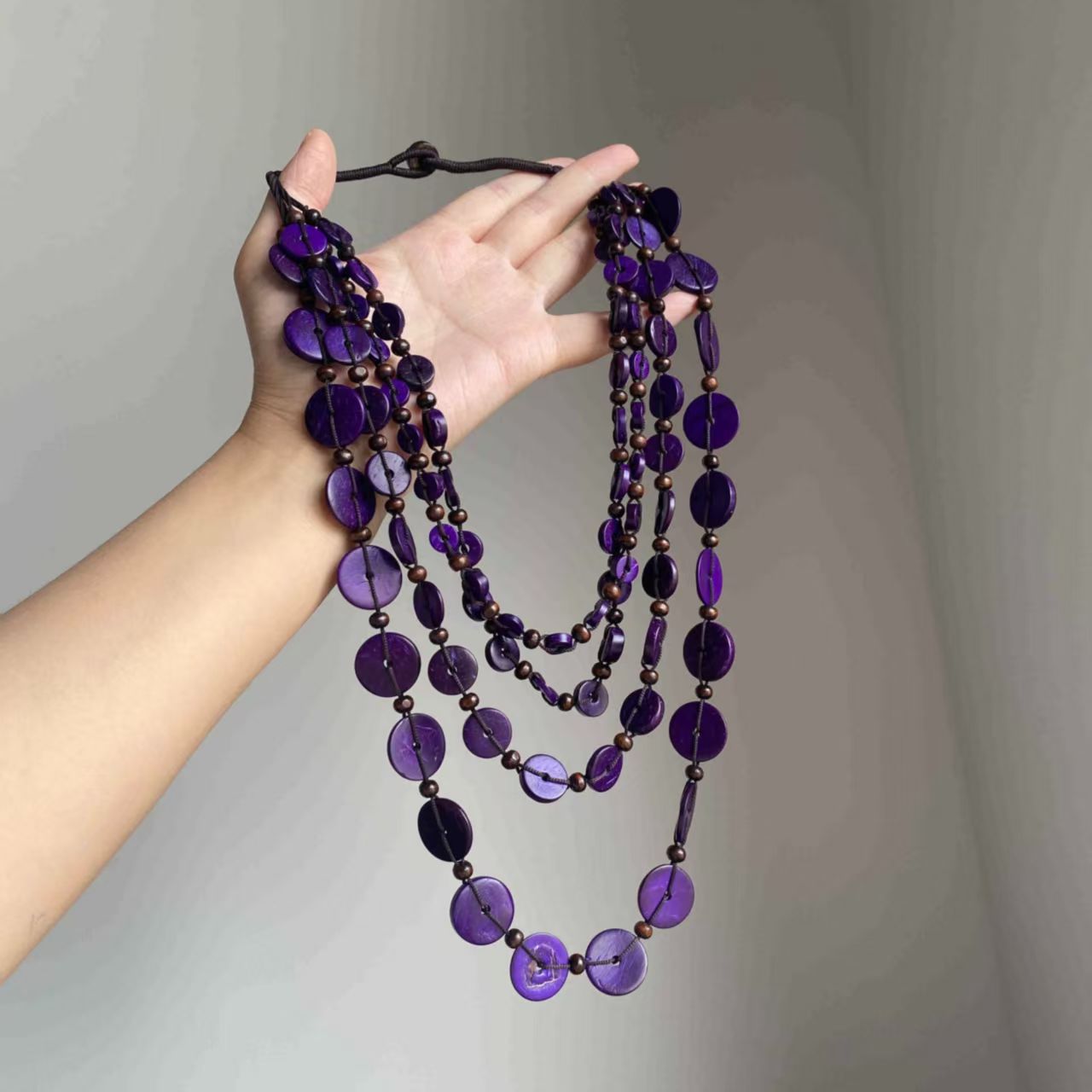 古着波西米亚紫色圆形椰壳项链欧美复古轻奢气质百搭锁骨链颈链