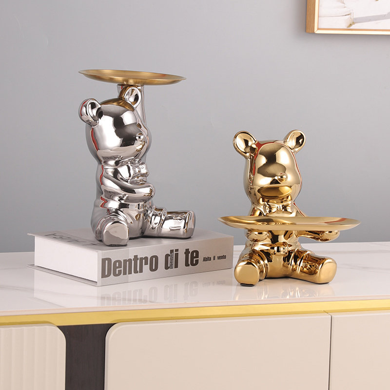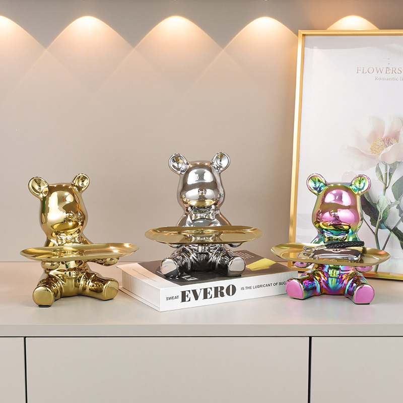 暴力熊收纳玄关入户钥匙托盘摆件轻奢电视柜酒柜客厅存钱罐装饰品